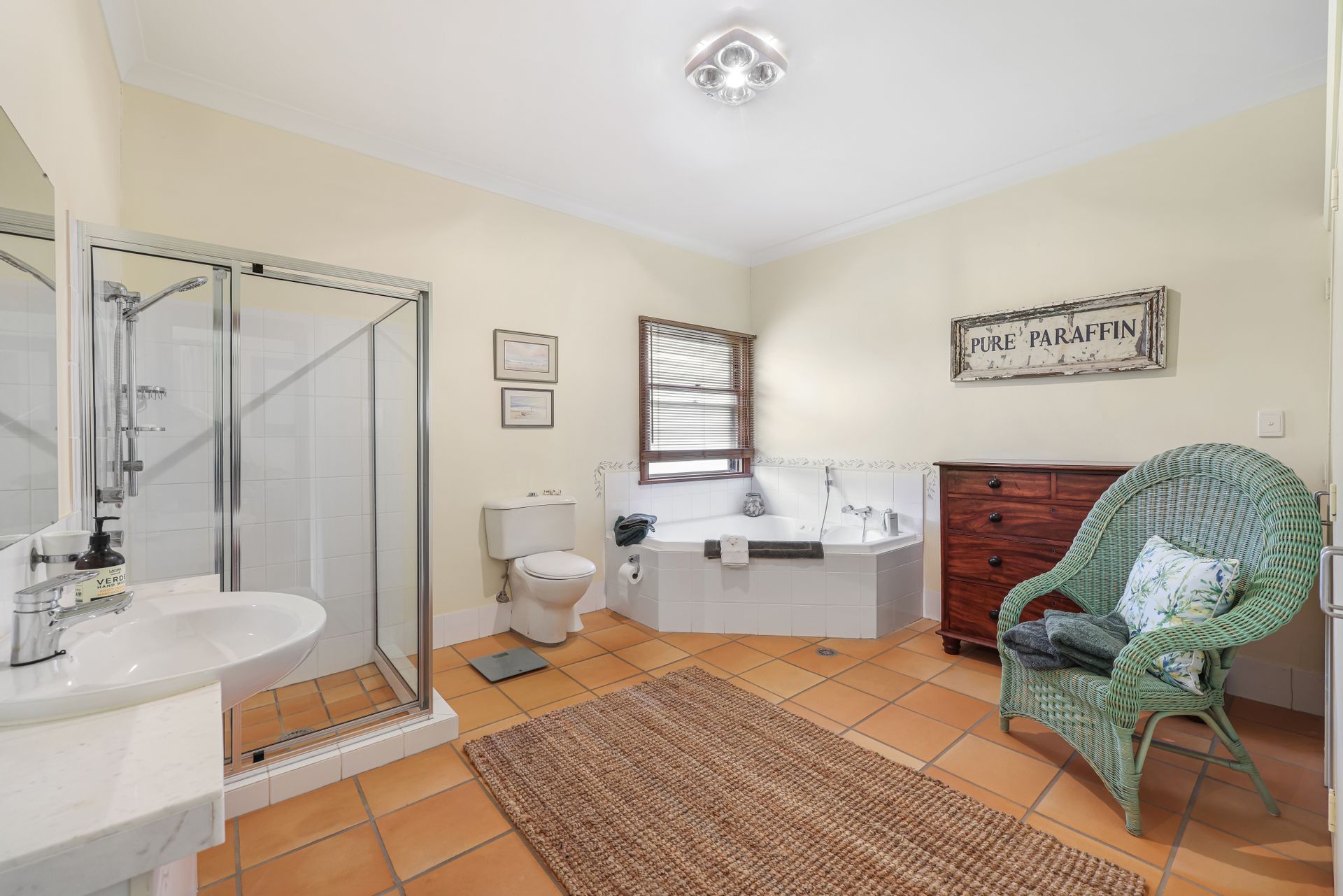 There are three bathrooms, two of which are ensuites, one with a spa bath.