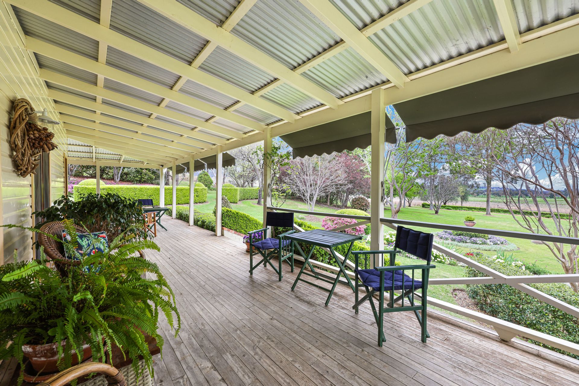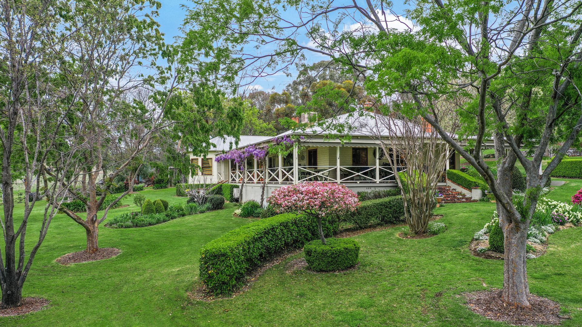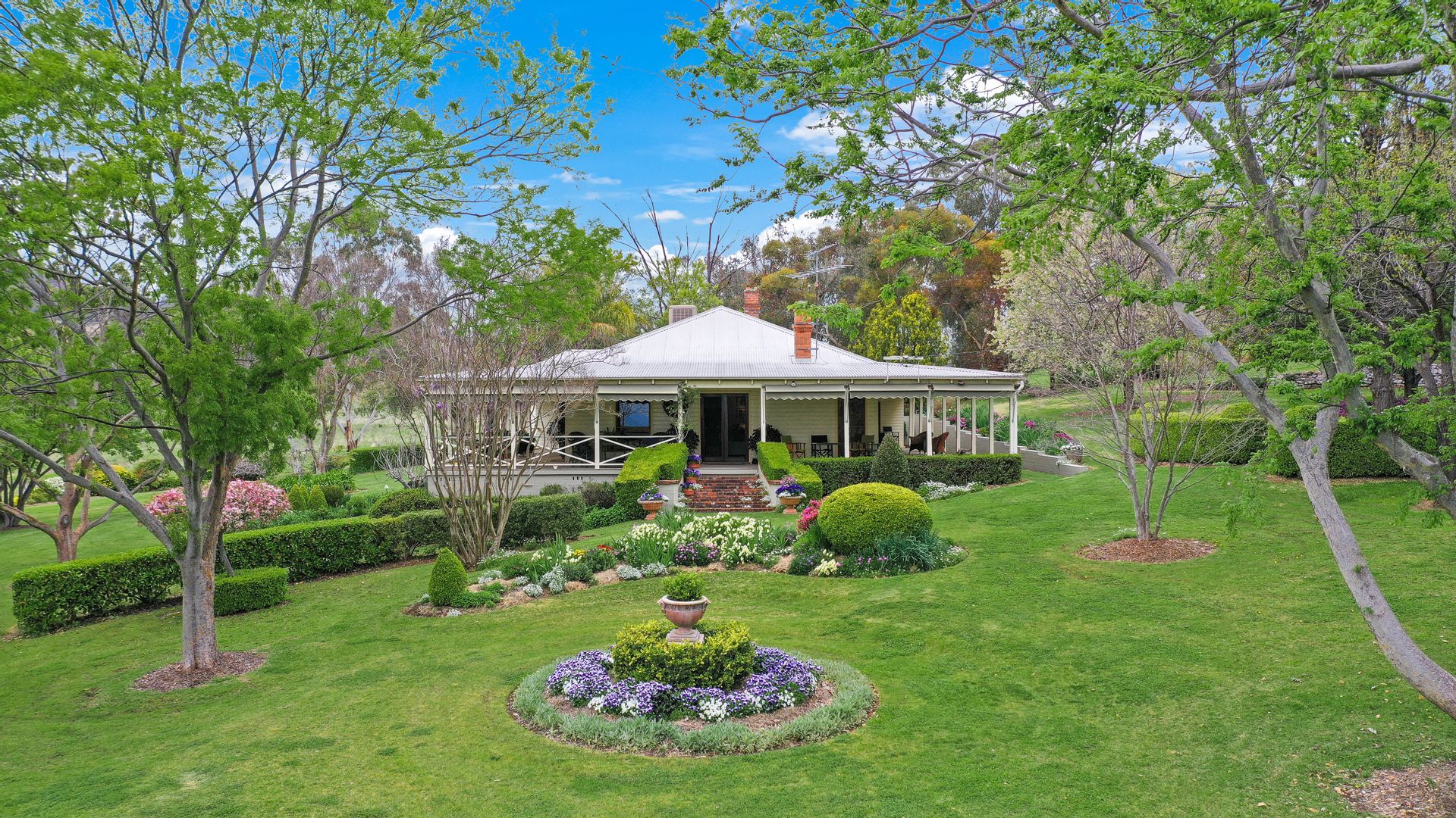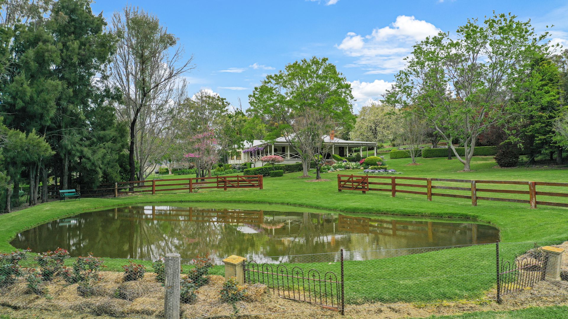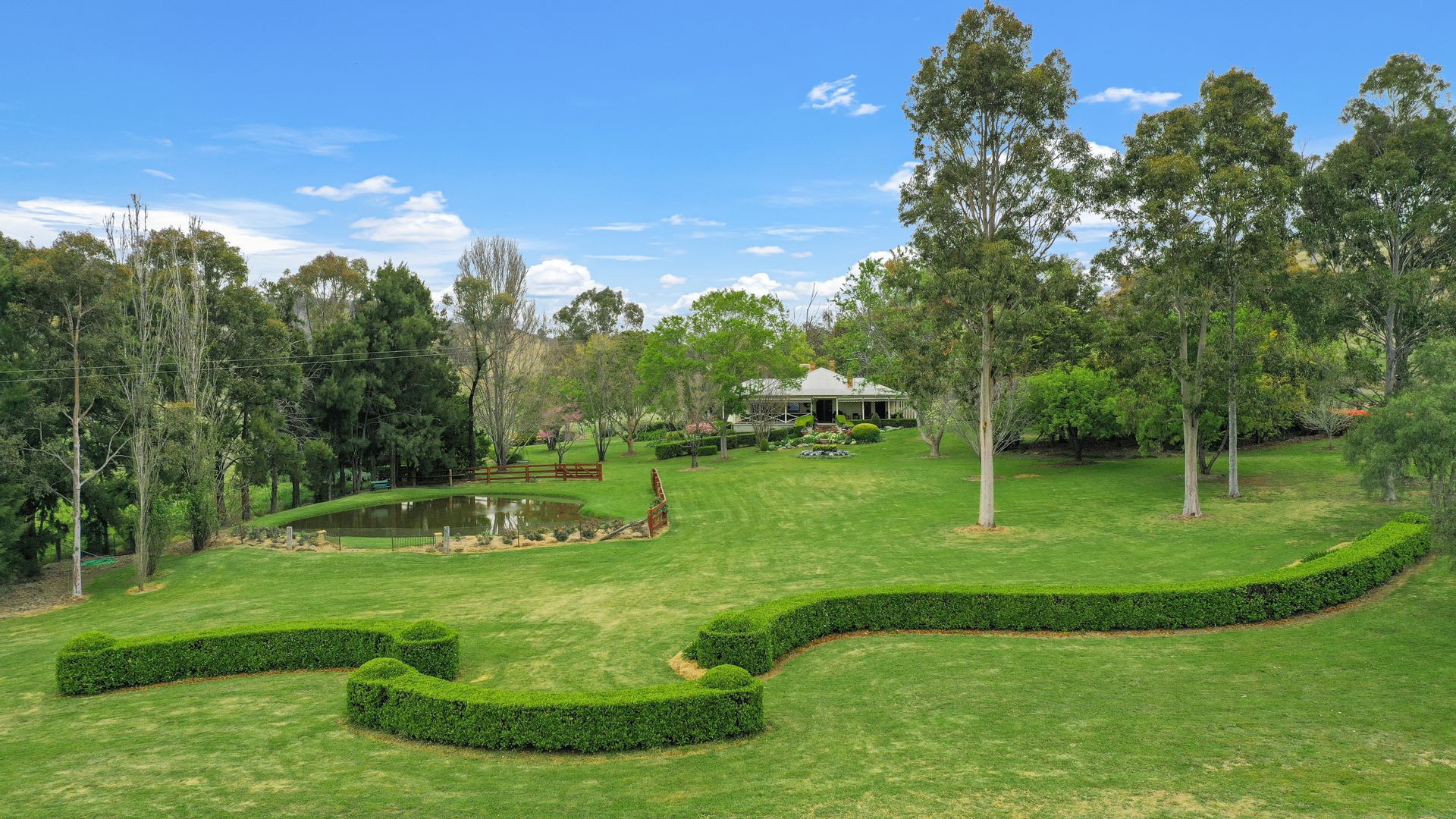 The home overlooks parklike gardens consisting of tall shade trees, flowing Buxus and Rose hedges, and a large dam which provides a lovely outlook, a great swimming area for children and a cooling microclimate.