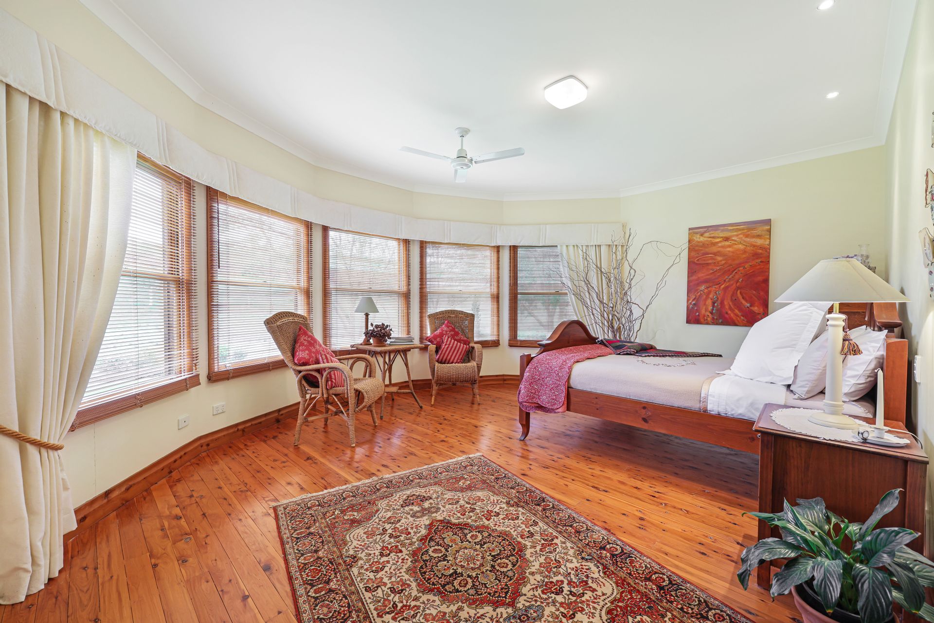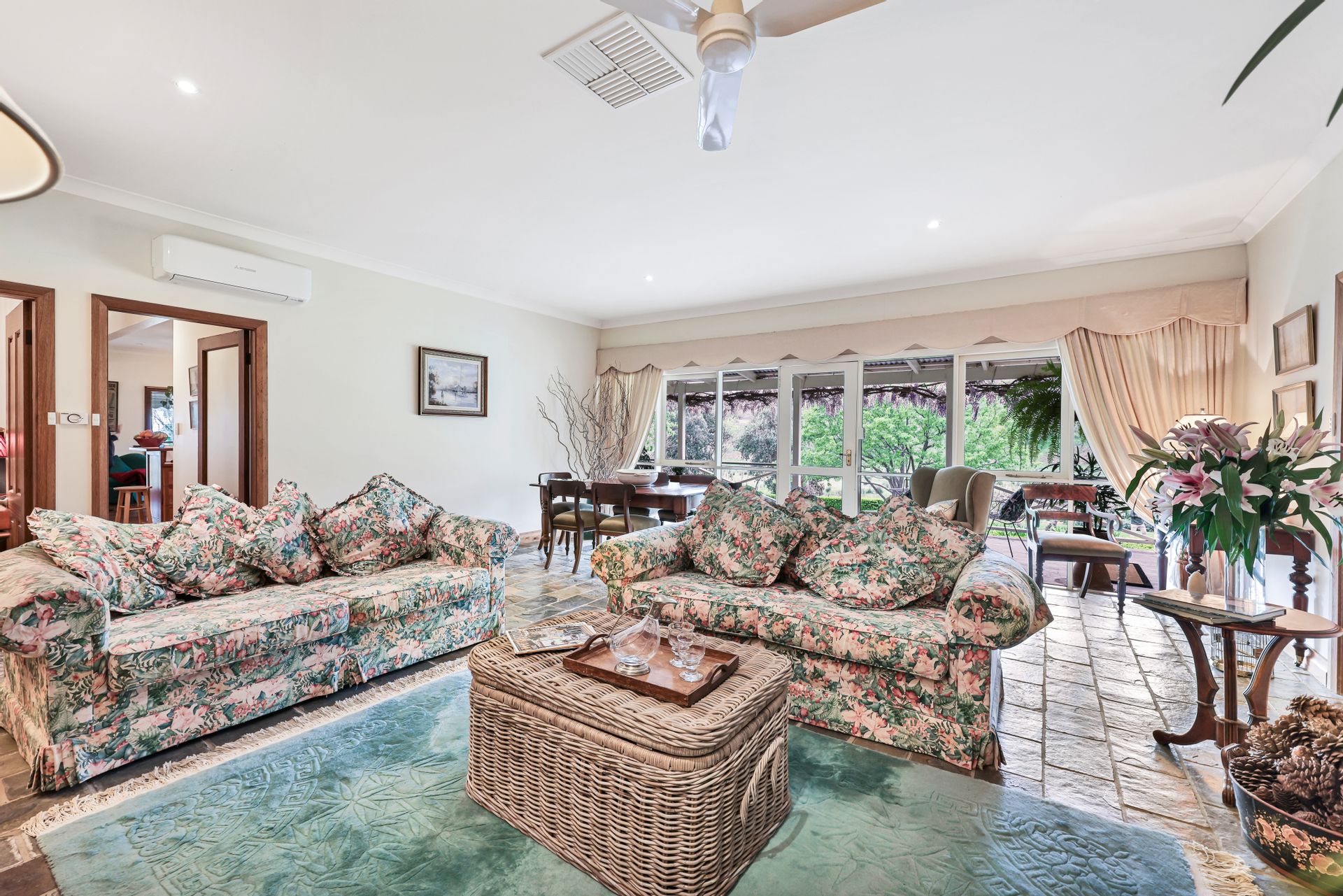 Wongabina is a home of generous proportions, with cypress timber flooring and nine-foot ceilings and three open fireplaces.