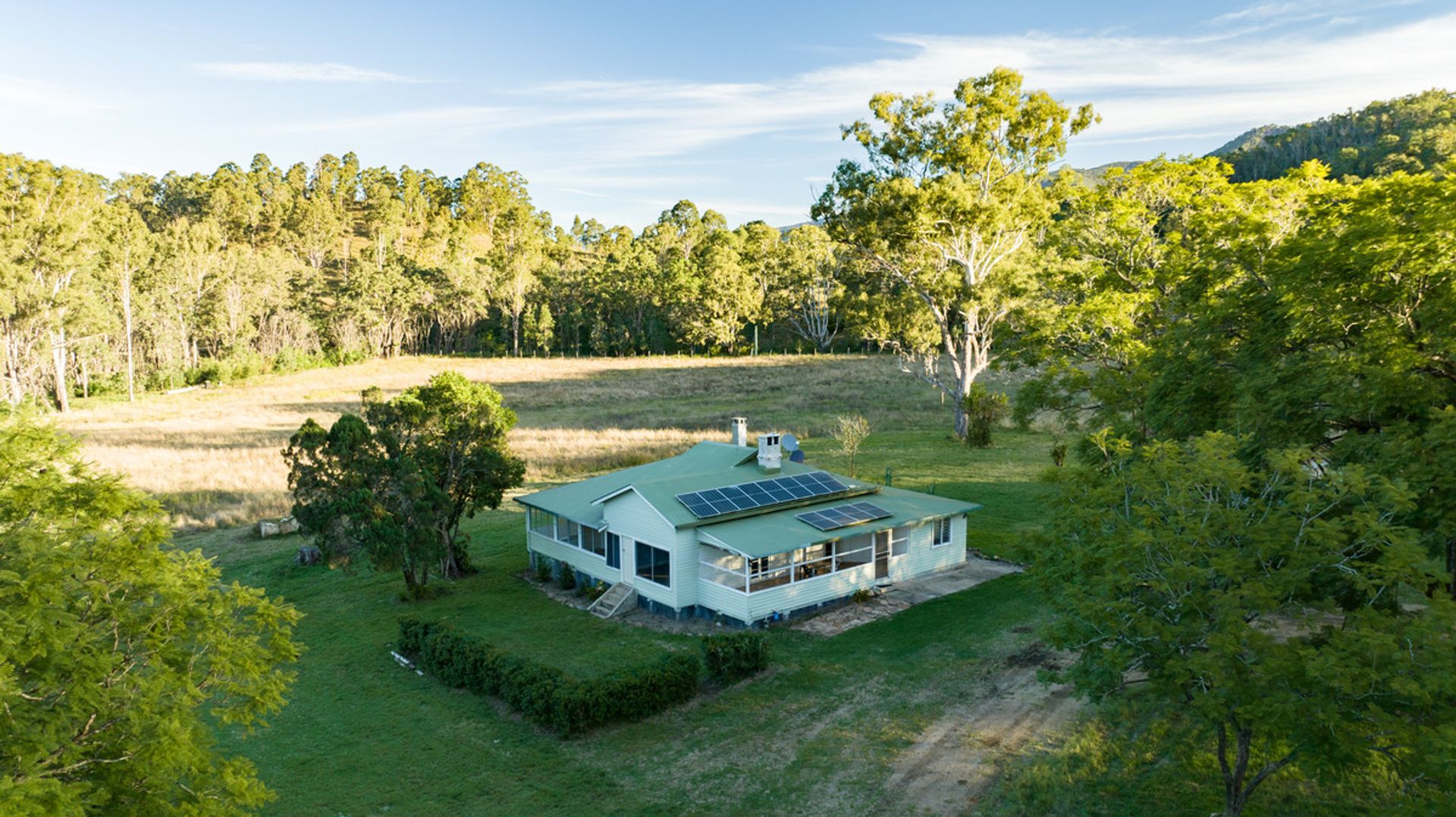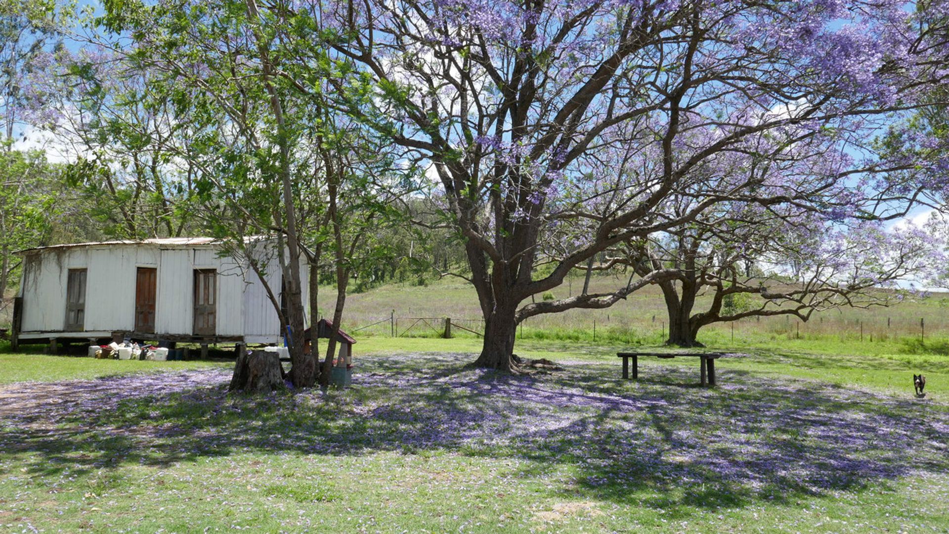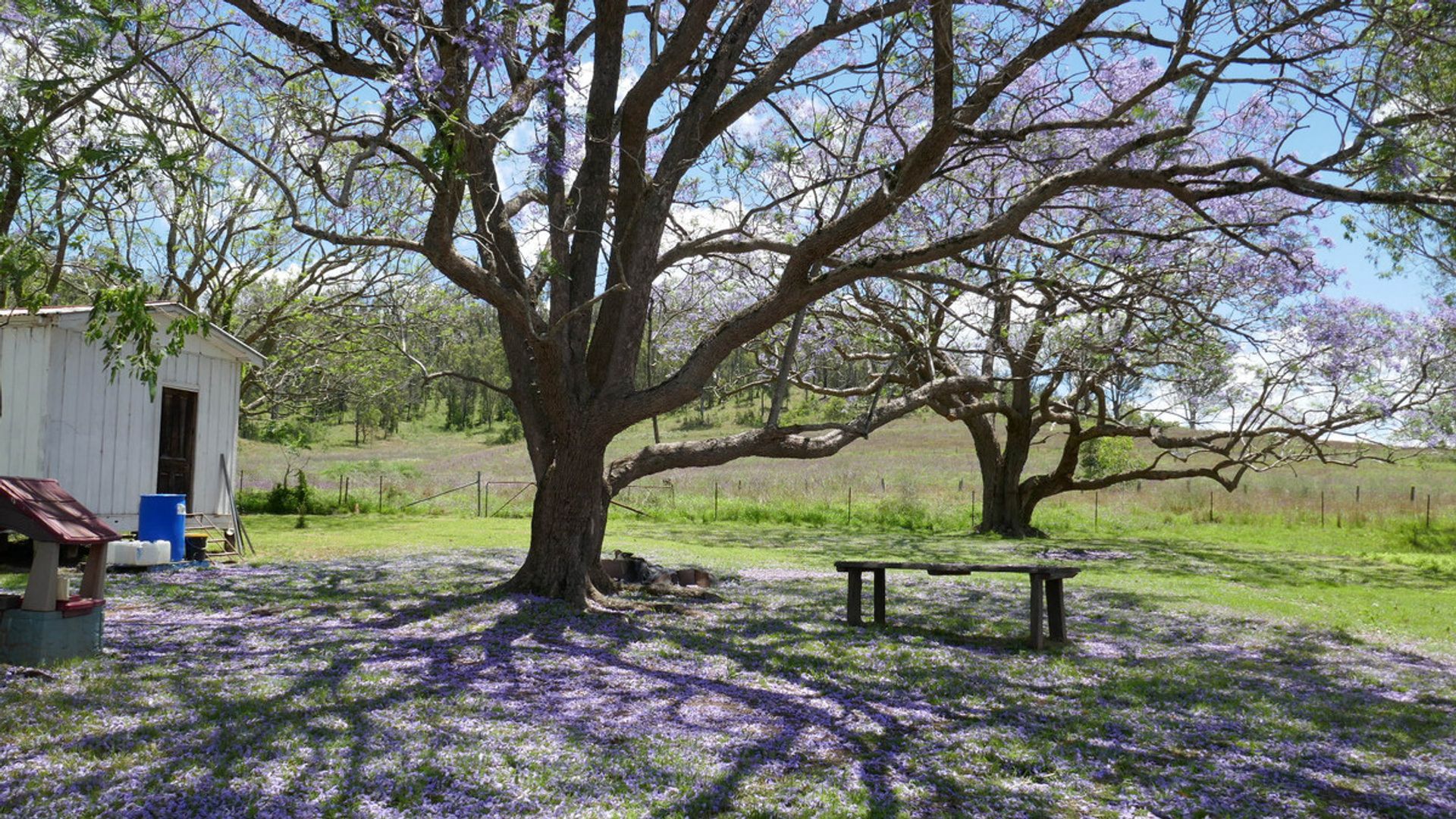 * The house paddock area has parklike features, mountain backdrop views and beautiful Jacaranda trees, being granite country, beautiful boulders out back.