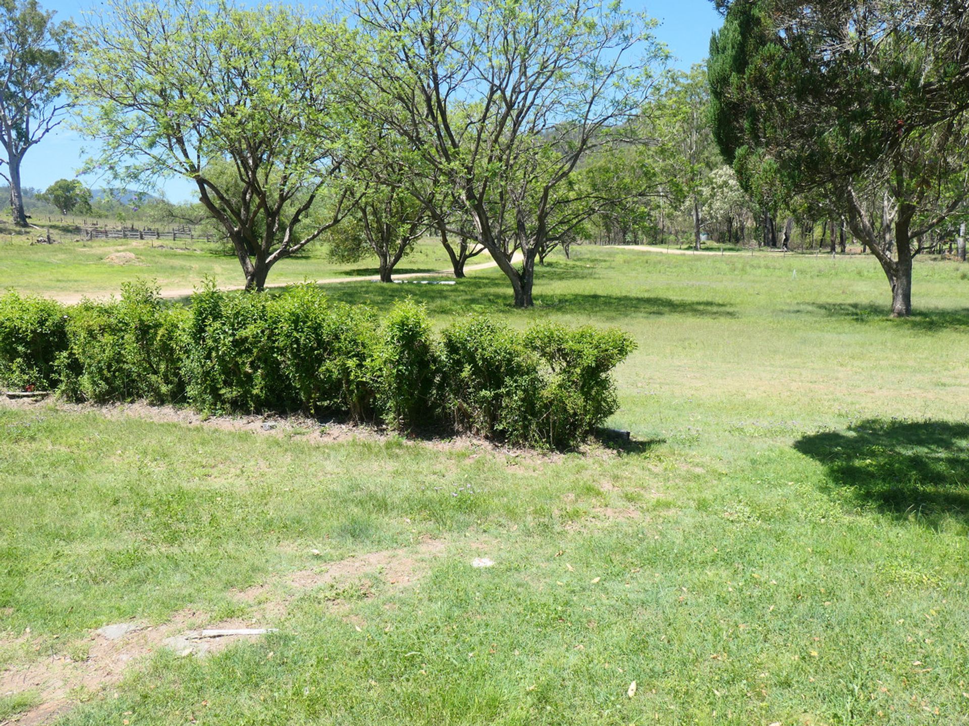 * Fenced paddocks around the main dwelling area, partial fencing along the top.