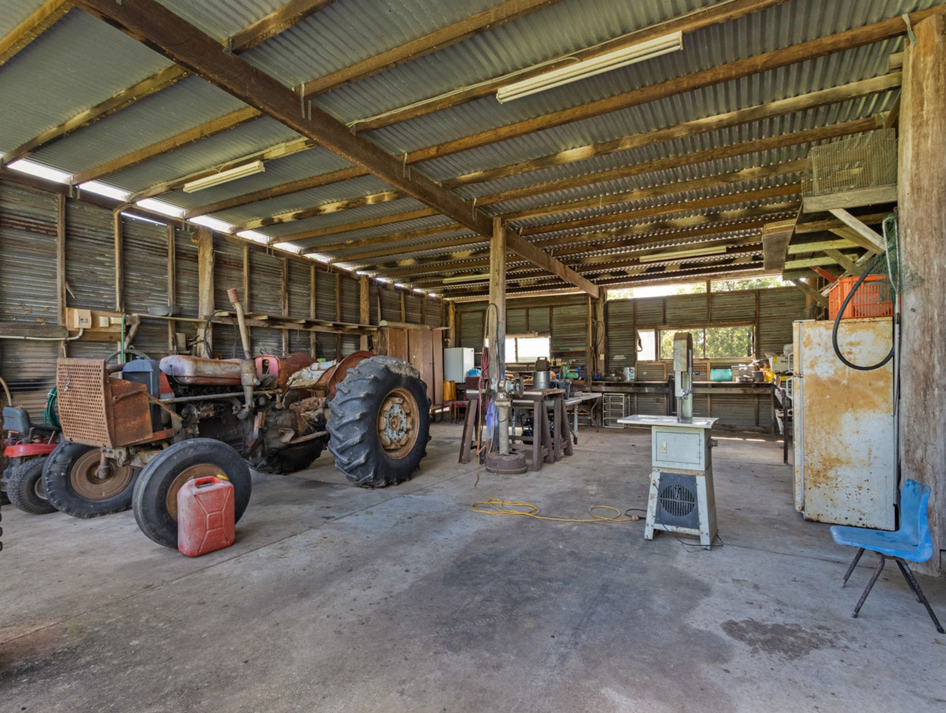 • Includes an older machinery shed, various equipment, and a small number of sheep