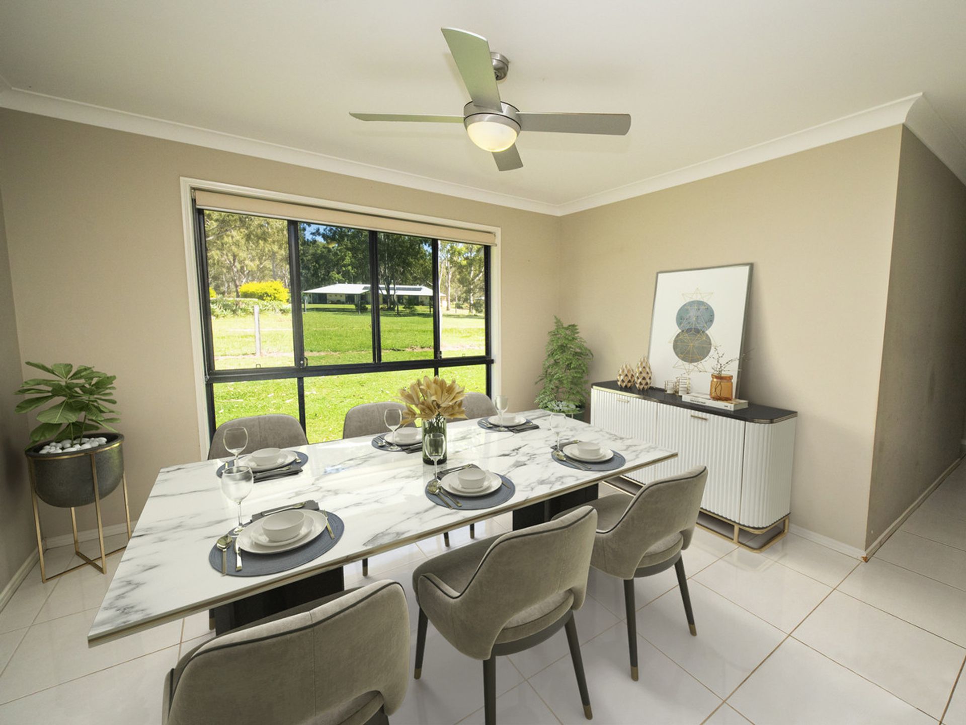 • Tiled Outdoor Area: Extend your living space outdoors with stacker doors and roll-down weather blinds for year-round enjoyment.