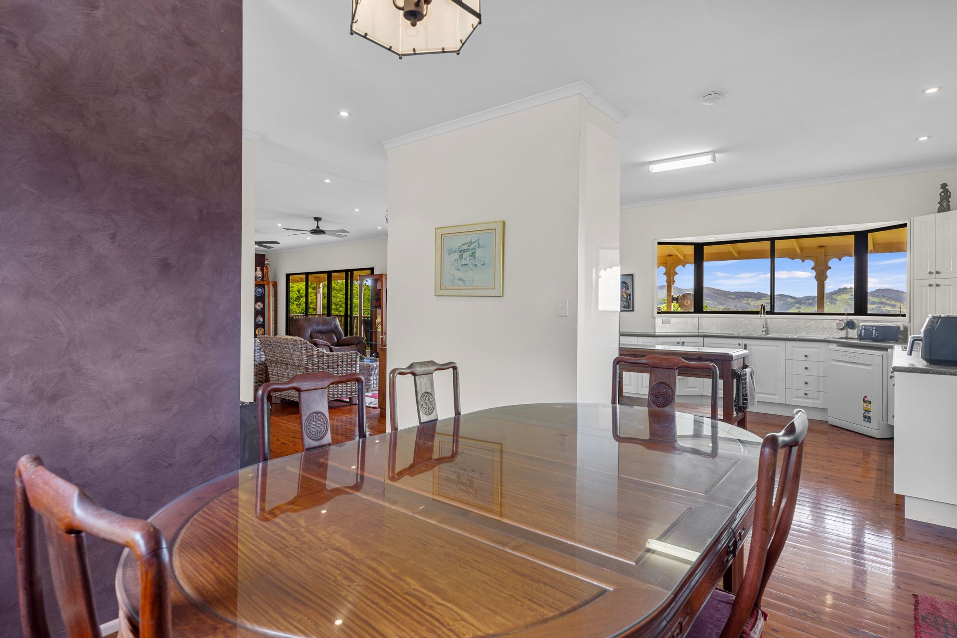 Upon entering, you are greeted by the warm embrace of beautiful timber flooring that stretches throughout the home, inviting you to explore further. The spacious living area boasts panoramic vistas of the surrounding countryside, offering a constant reminder of truly how beautiful the valley is.