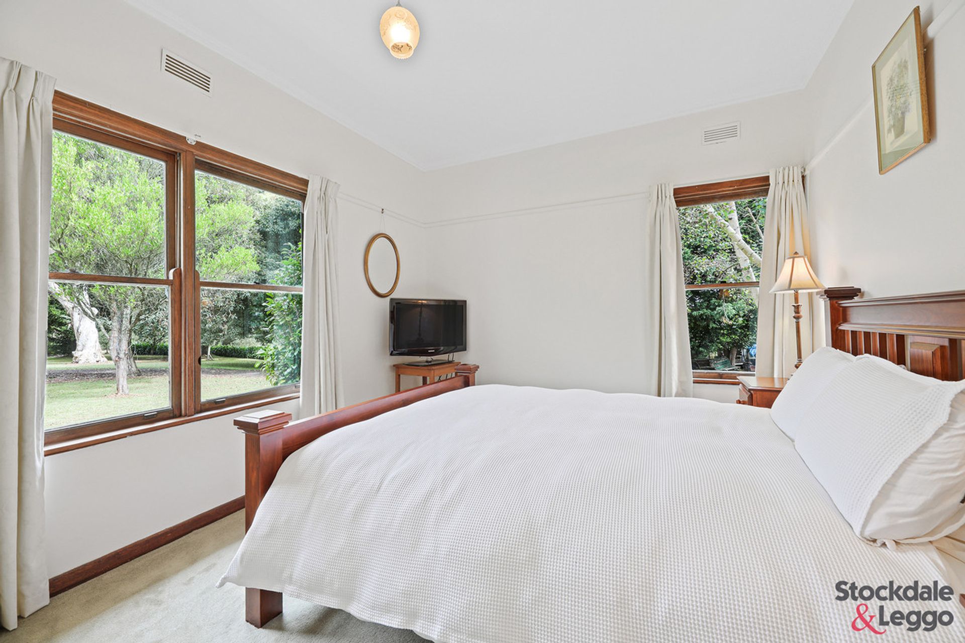 Warmed by a cosy wood fire with the backup of a split system, this delightful space boasts hardwood floors, picture rails, lofty ceilings, an ornamental fireplace and large double hung timber windows. The kitchen displays timber look benchtops, and quality Miele appliances. Soak up the glorious winter sun and exquisite outlook in the adjoining North facing sunroom that opens onto the expansive back deck that is ideal for entertaining.
