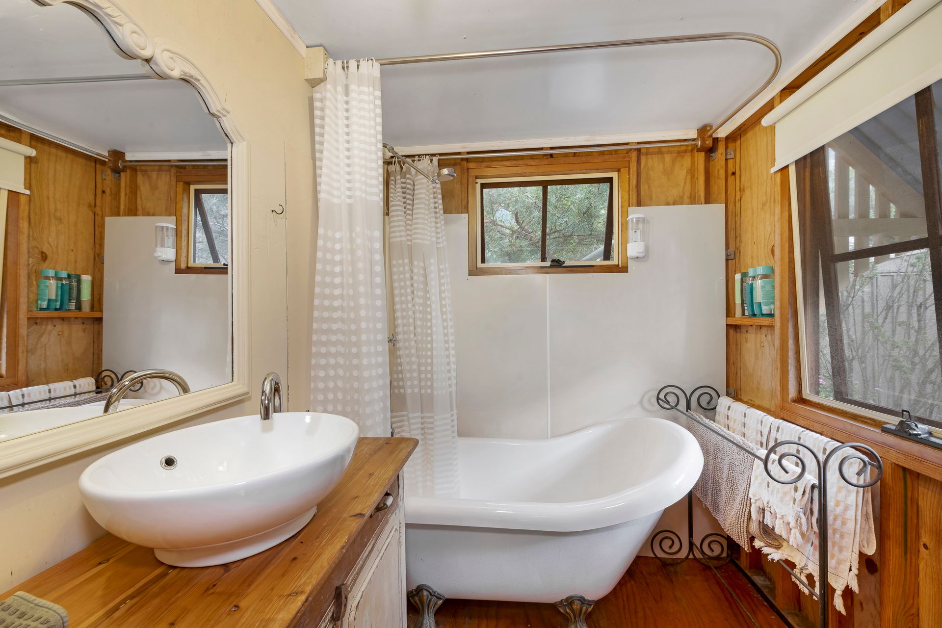 - Spacious Bathroom with Claw Foot Bathtub/Shower, Vanity & Toilet