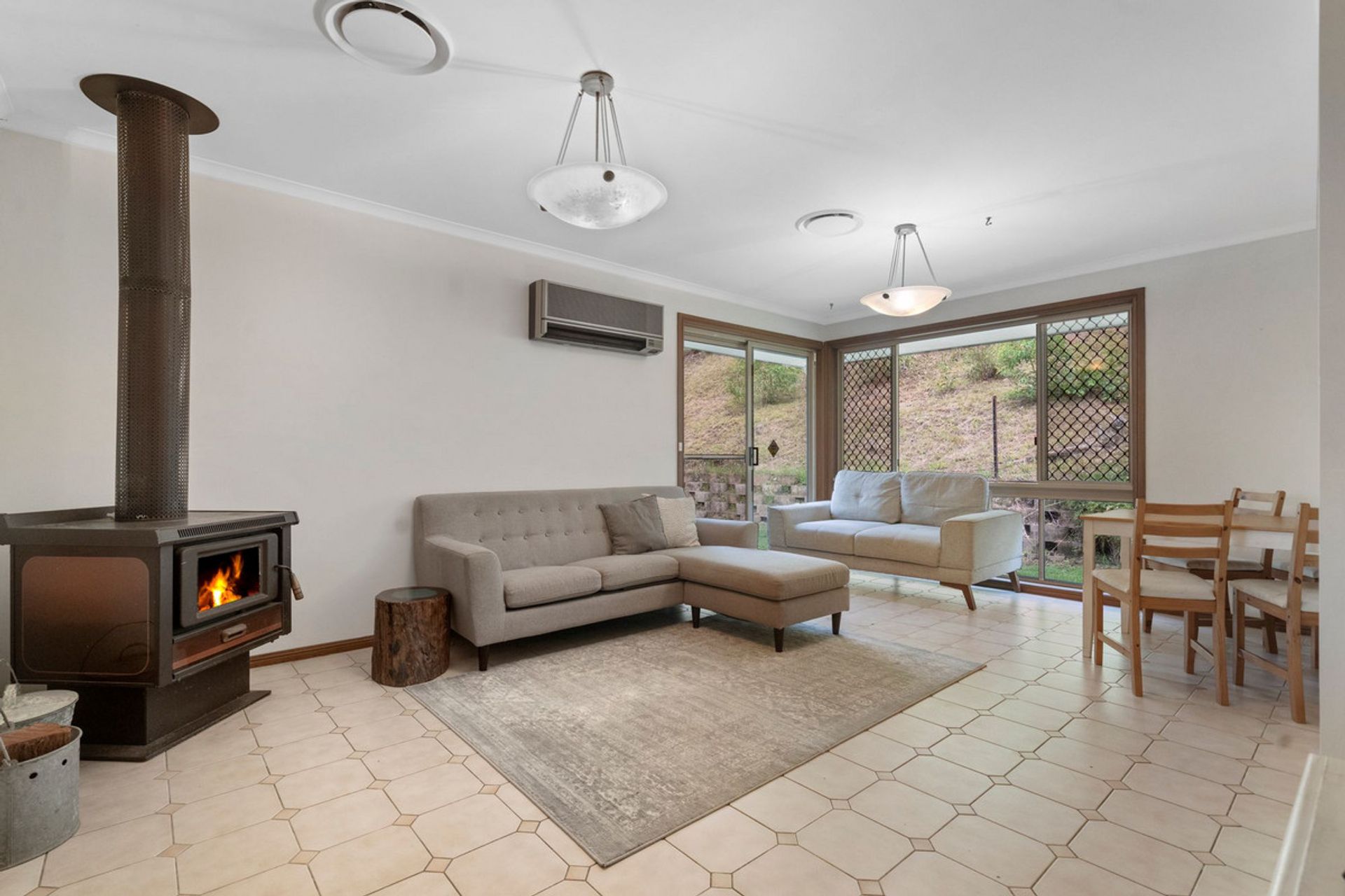 The home offers space and country style living, with an open fireplace to the formal lounge & dining, French style windows to the front of the home and large timber kitchen.