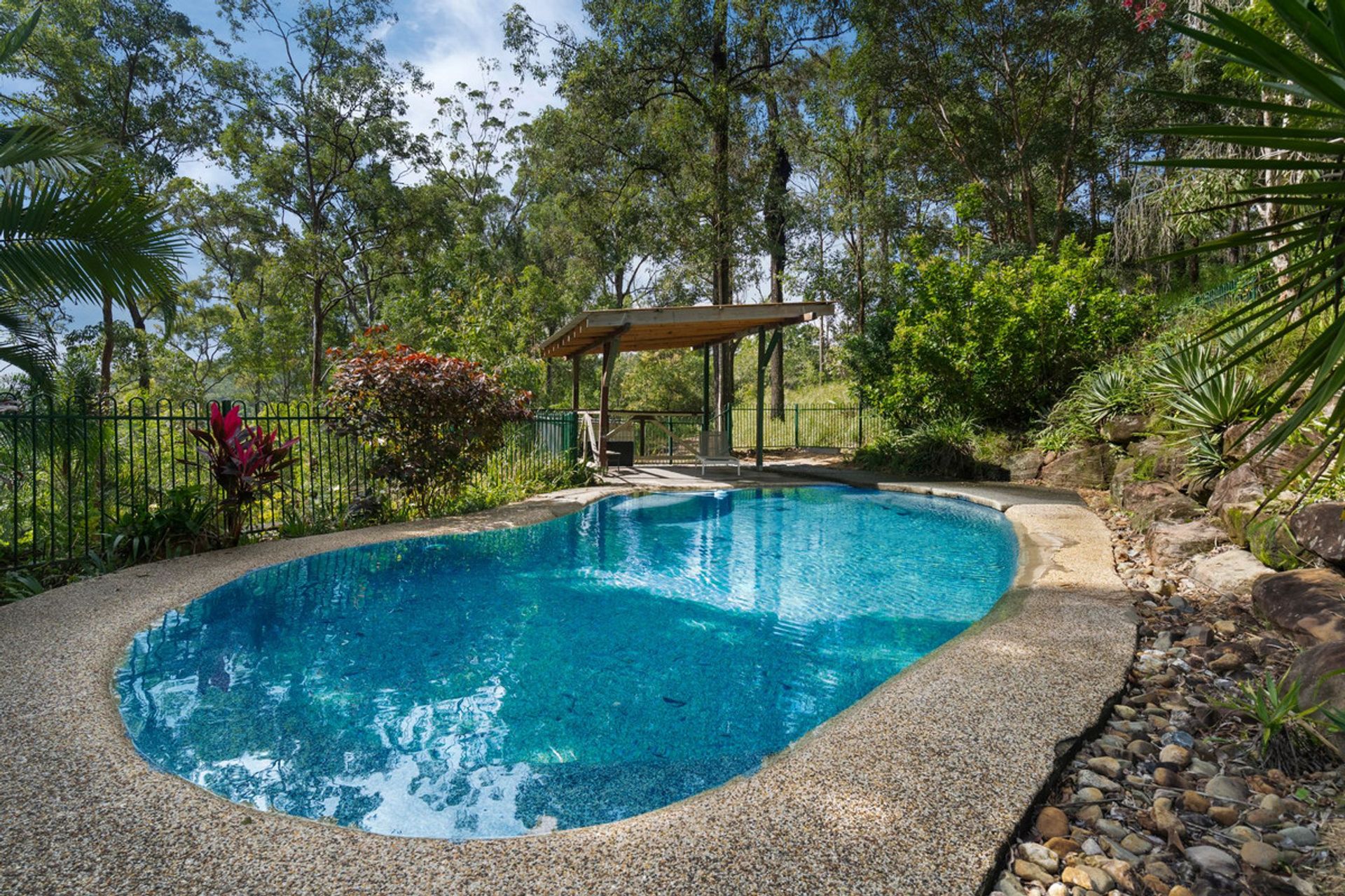 The creek is the boundary which backs to the state forest and horse trails.