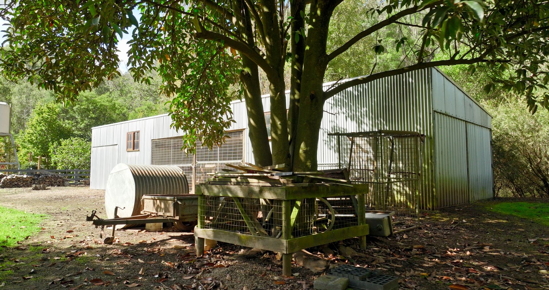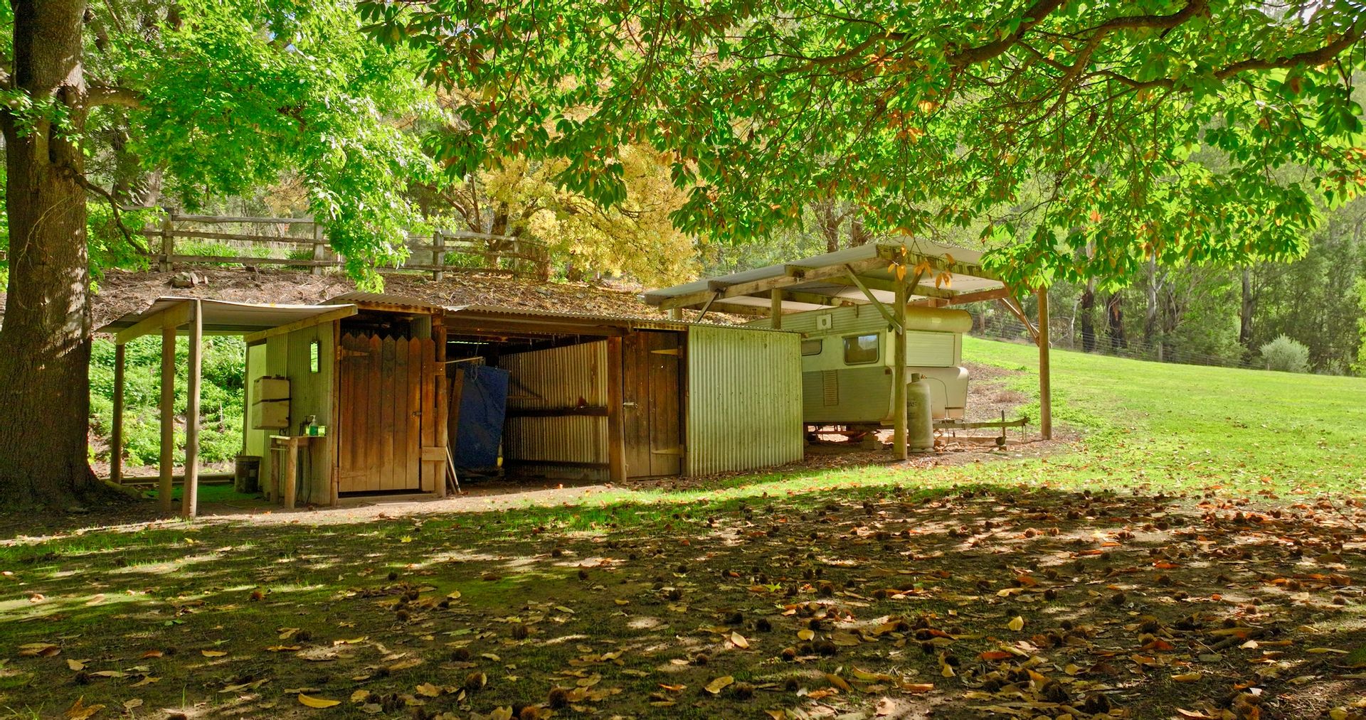 On the property it boasts a tremendous shed used for workshop, storage and in previous years nut storage and drying. Further down the property is a campsite offering an open-air kitchen area, storage shed, shower and toilet facilities and the historic log cabin. The property is *8 ha or 20 acres in size with a large portion of steep timbered hill country located on the top side of the road, with the river side manicured into extensive parklike surrounds offering a very appealing setting.