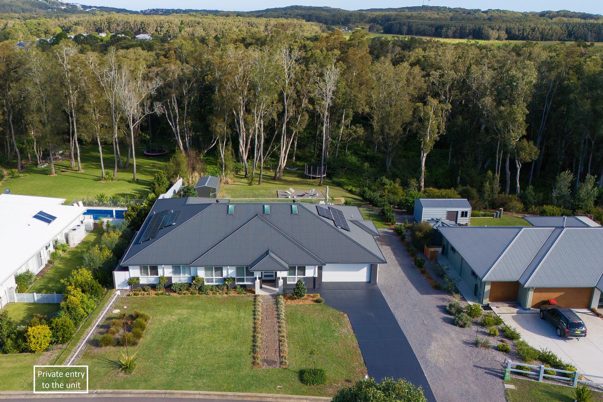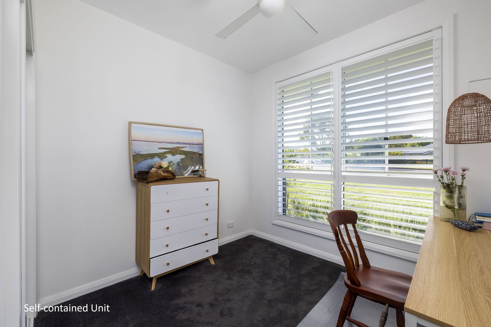 Cleverly tucked down the east side of the home is the private entrance to the fully self-contained two-bedroom unit. Open-plan kitchen, living, and dining are bright and airy and have two adjacent bedrooms and a full bathroom and laundry. Ideal for anyone who has a parent/grandparent residing with them or as a way to generate extra income through hosting holiday guests or a permanent tenant.