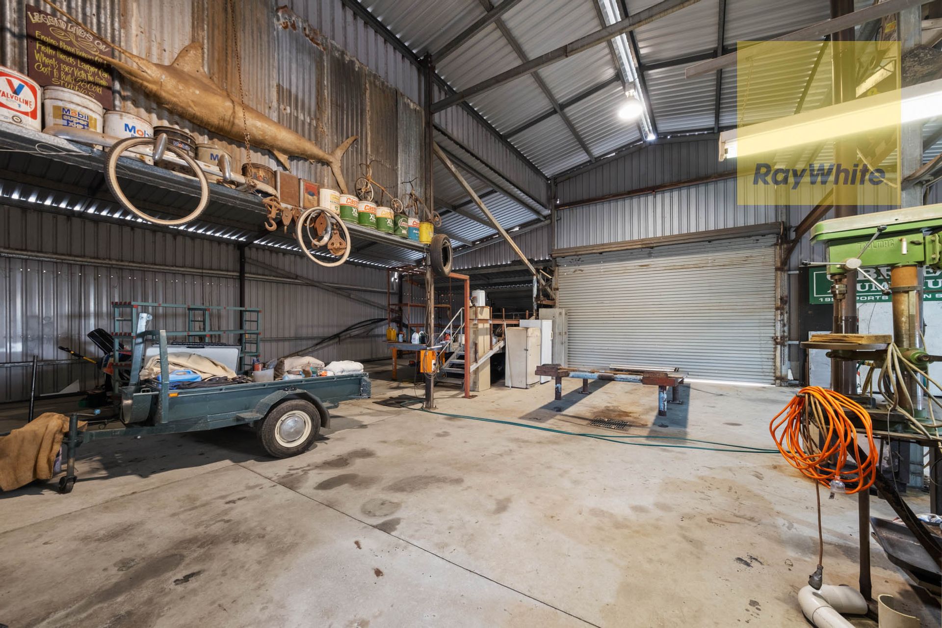 An extensive workshop/industrial barn offers high-clearance roller doors, mezzanine storage, overhead gantry, toilet and woodfire. Additional carports and hardstand areas will impress car enthusiasts or business operators.