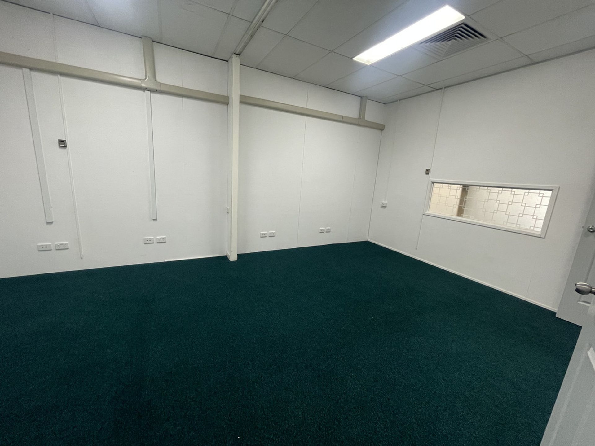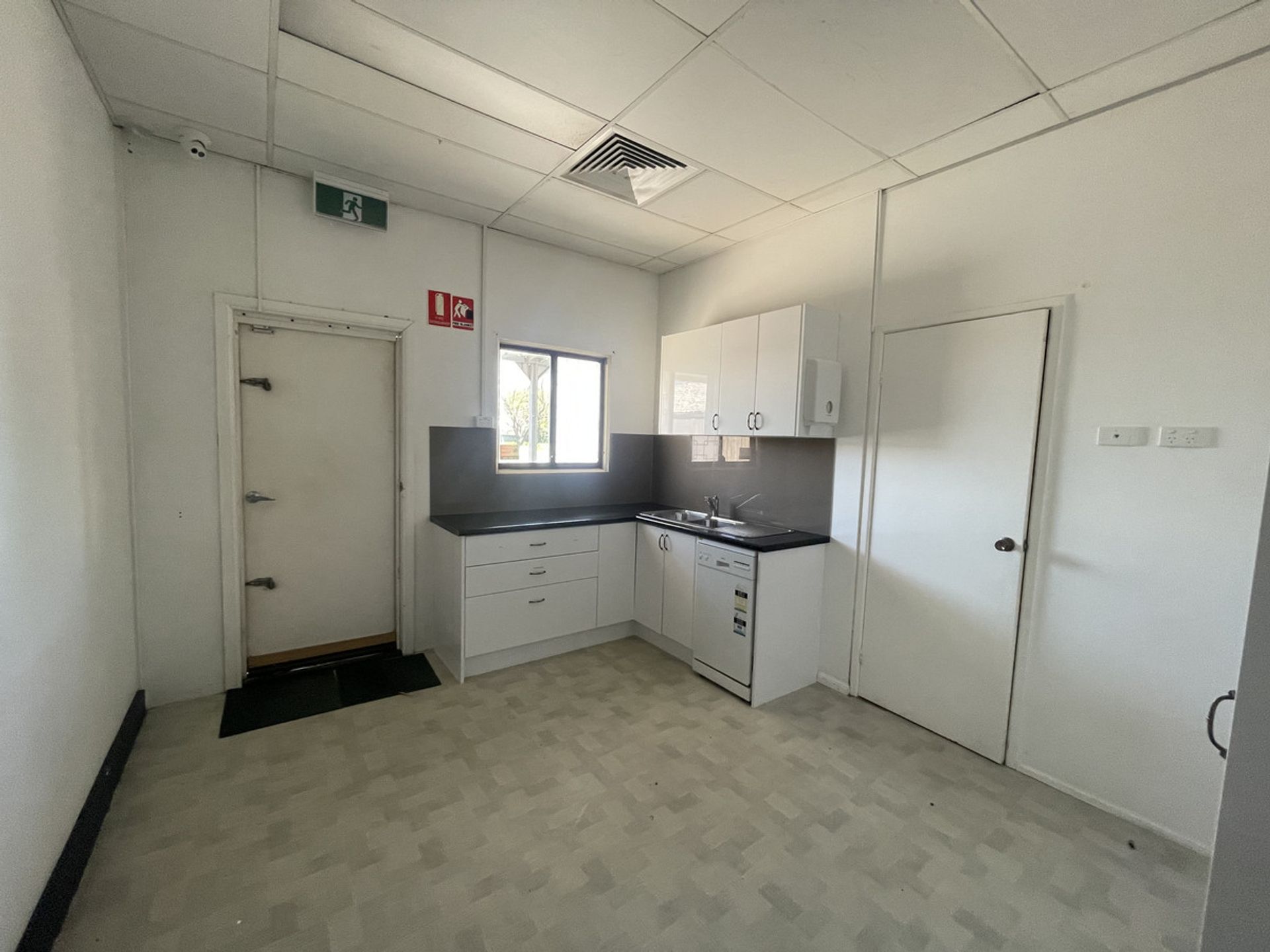 This commercial building measures approximately 340 square meters in total. There are 3 separate suites within the complex. Each approximately 14.3m x 5.5m in size, set up with multiple office spaces within, including reception areas and individual private offices. Each of the 3 large spaces has a kitchenette and access to the 2 rear toilets via their own rear door exit.