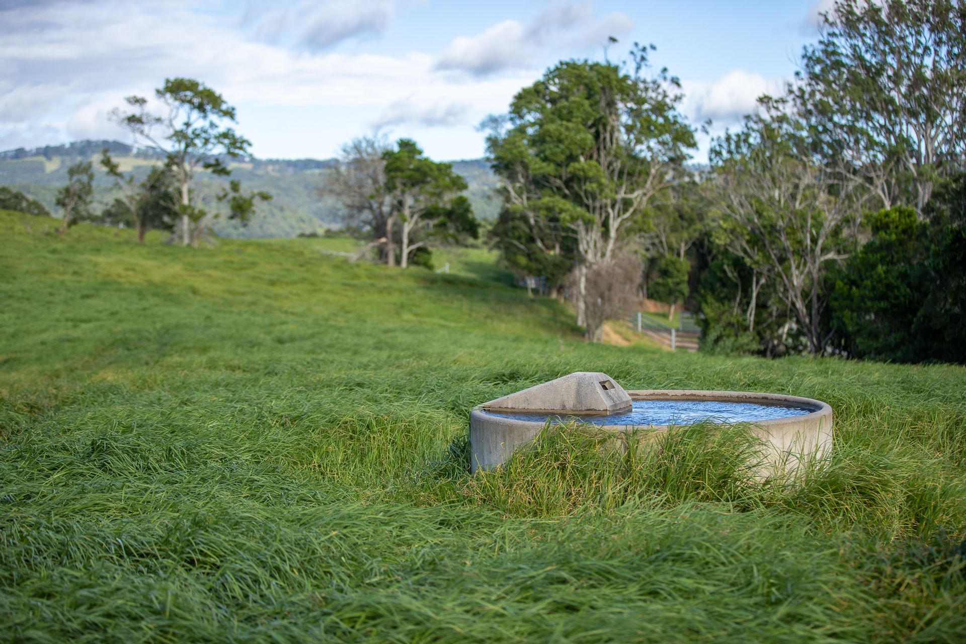 - 13 x 1,000L concrete troughs supplied from spring fed dam with 30,000L/day solar pump to 3 x 22,000L header tanks.