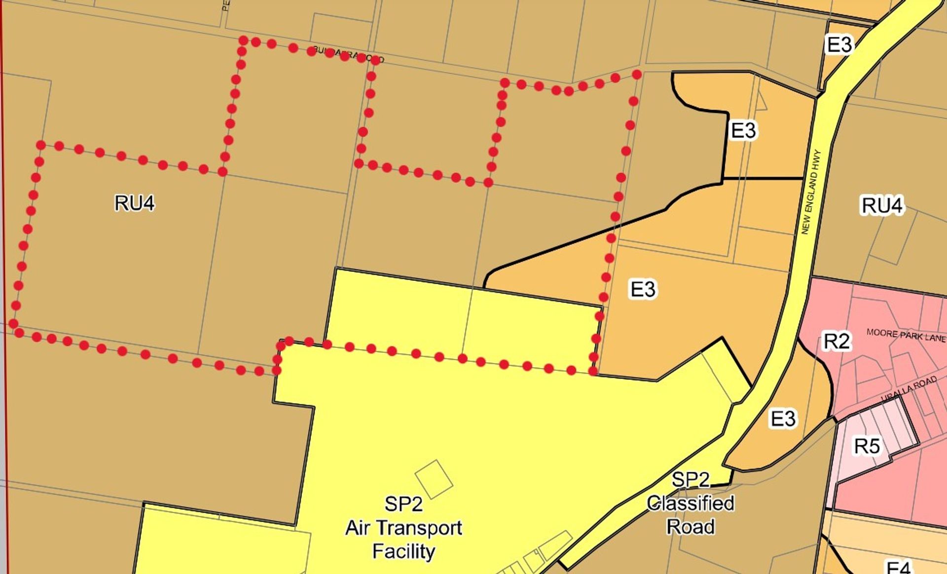 The property offers future development opportunities or merit as a long term land bank as the majority of the farm carries an RU4 zoning (Primary Production Small Lots). The RU4 zoning permits a minimum lot size of 40 hectares. In total there are 10 lots, with two of the lots located on the southern boundary zoned industrial. Mains power traverses the property.