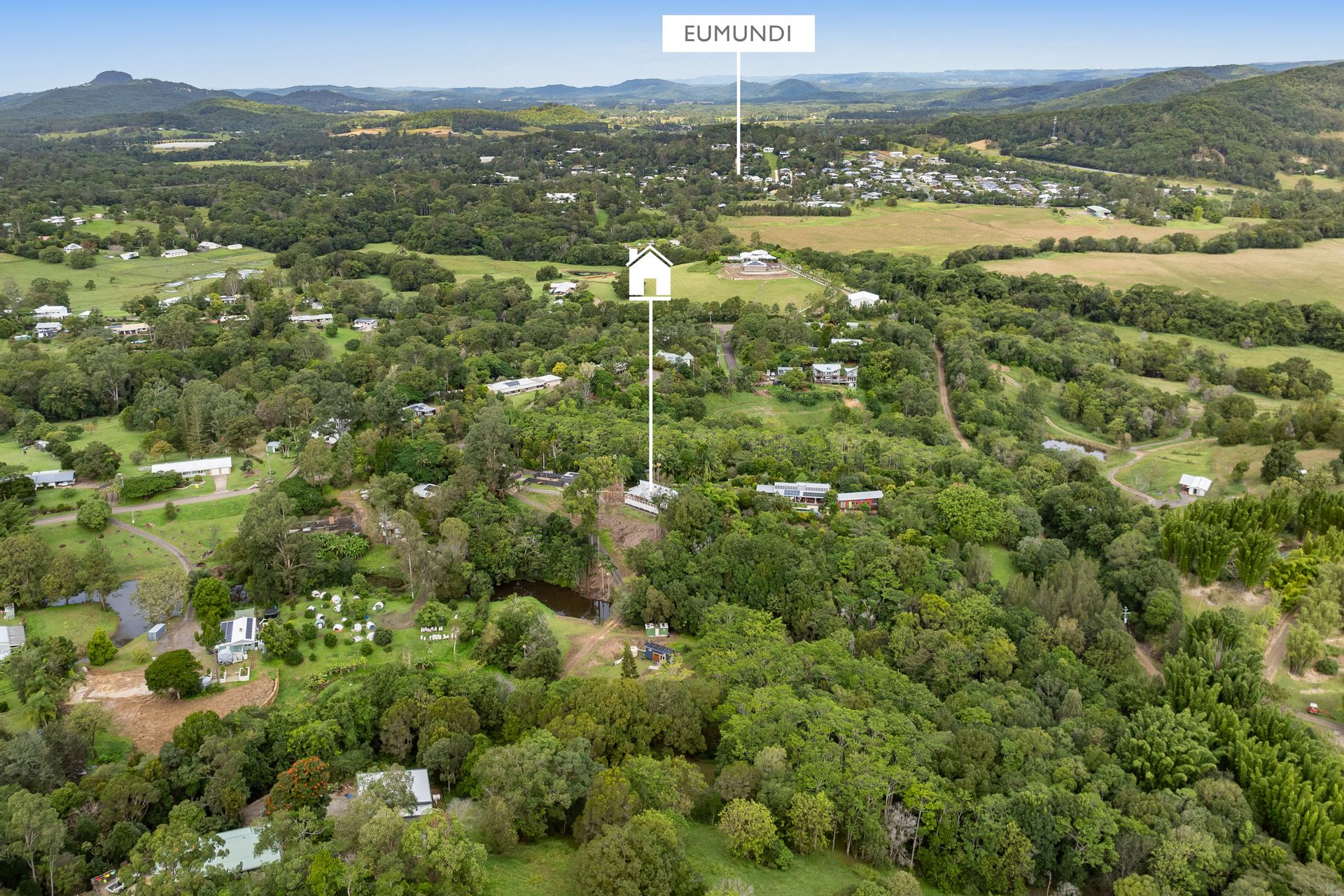 As you step onto the property, you'll be greeted by its perfect north-east aspect, elevated to capture views over the lush landscape of Eumundi. The town of Eumundi itself is a vibrant hub known for its bustling markets, eclectic cafes, and artistic community, all within walking distance from your doorstep.