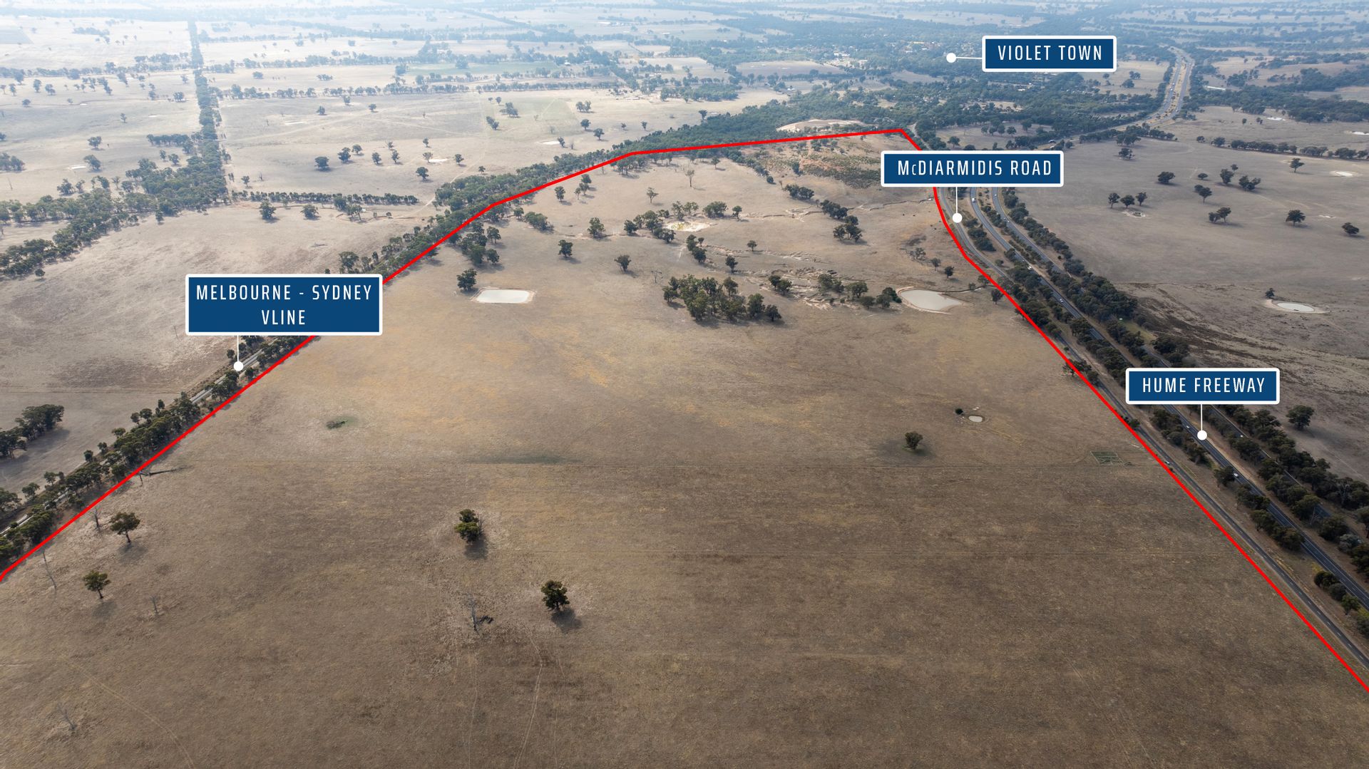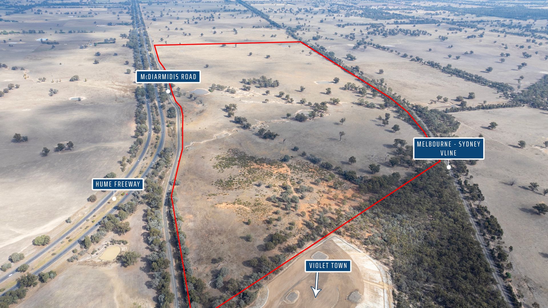 This almost 468-acre property with bitumen road frontage is located on the west side of McDiarmids Road, just south of Violet Town. It is just off the Hume Highway and an easy 2-hour run to Melbourne.