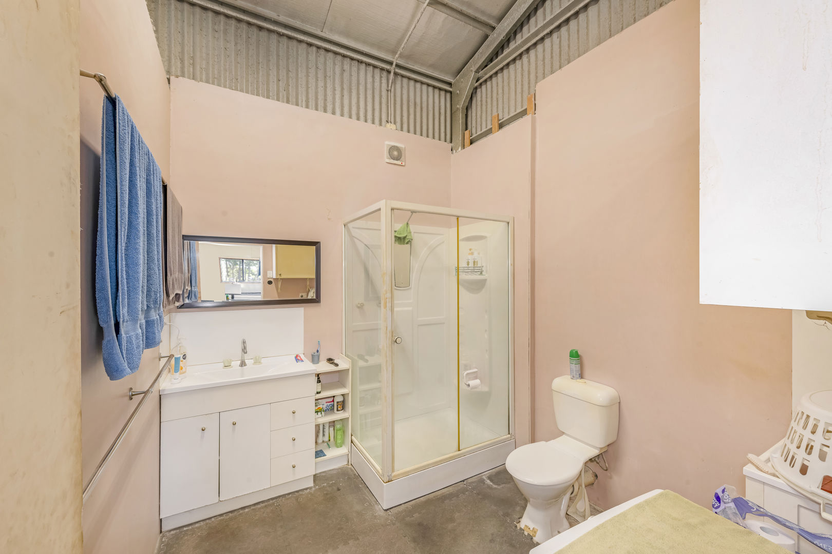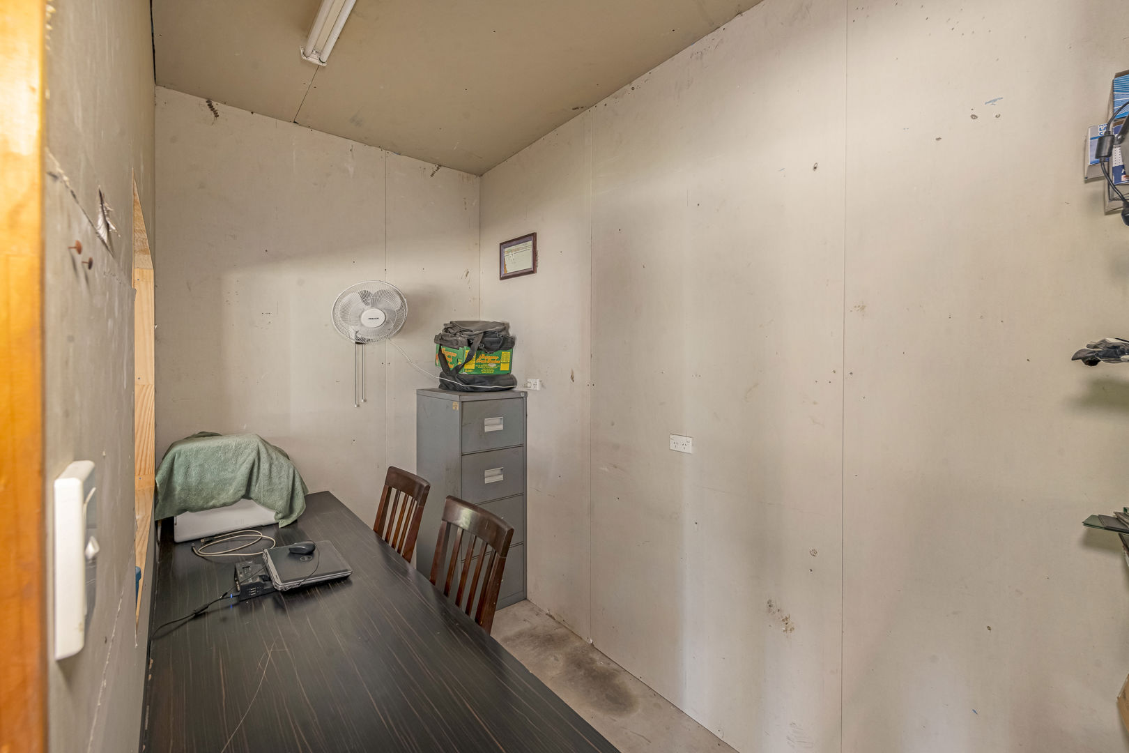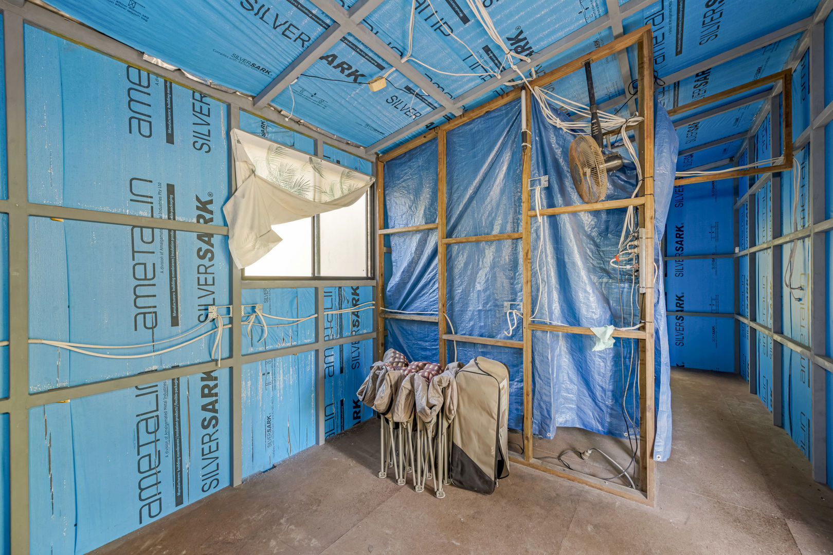 - Off Grid 16m x 9m x 3.8m (wall height) High Clearance Shed with Insulated Roof, Office, Living Space, Concrete Floor, Power, Lights & Ceiling Fans