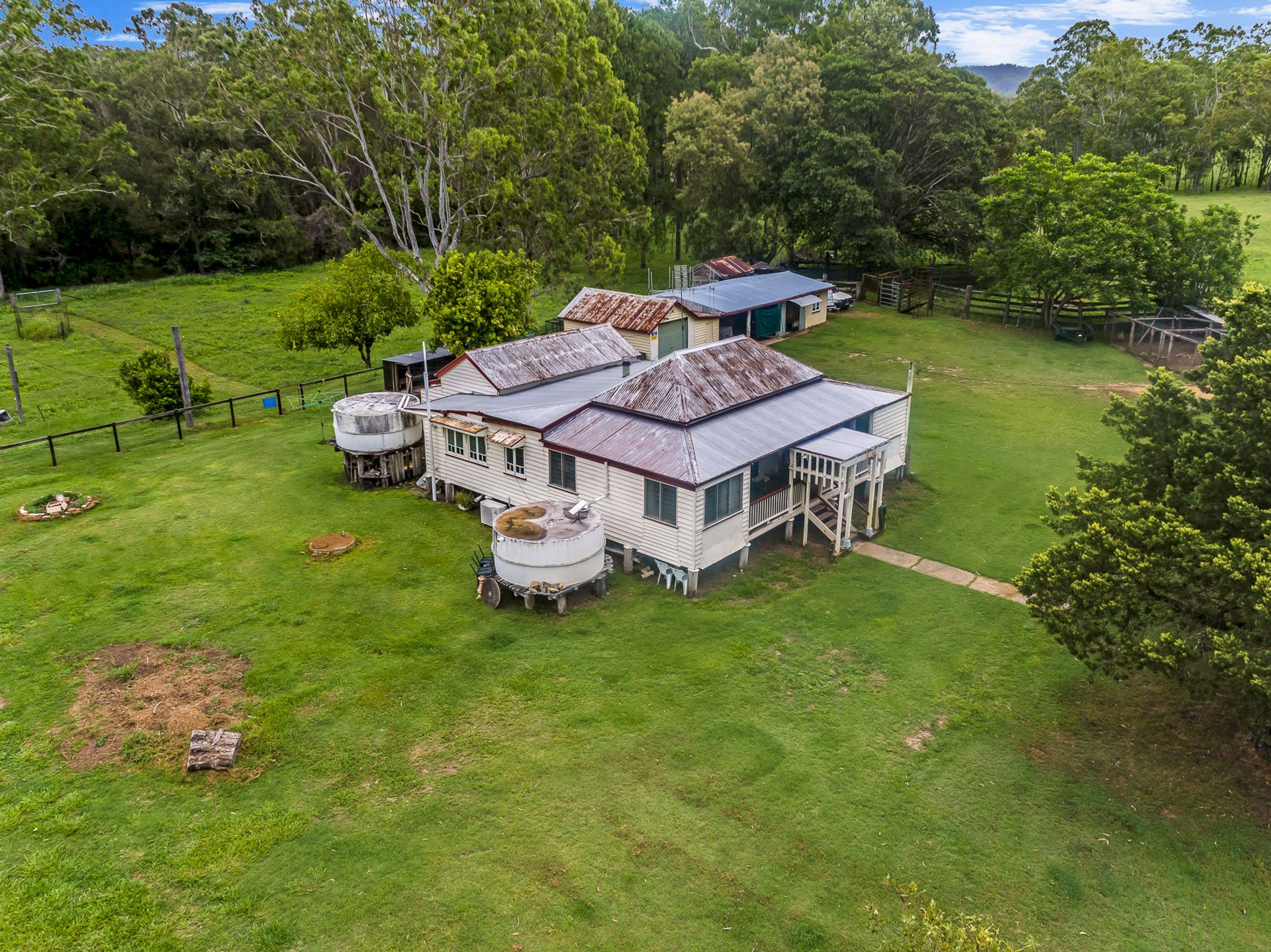The property is fully fenced with internal fencing, ensuring security and peace of mind for both your family and your furry friends with a dog-fenced house yard and secure dog pens. A potable bore and "Sunday Creek" on the rear boundary provide ample water supply, complemented by three rainwater tanks connected to the home.