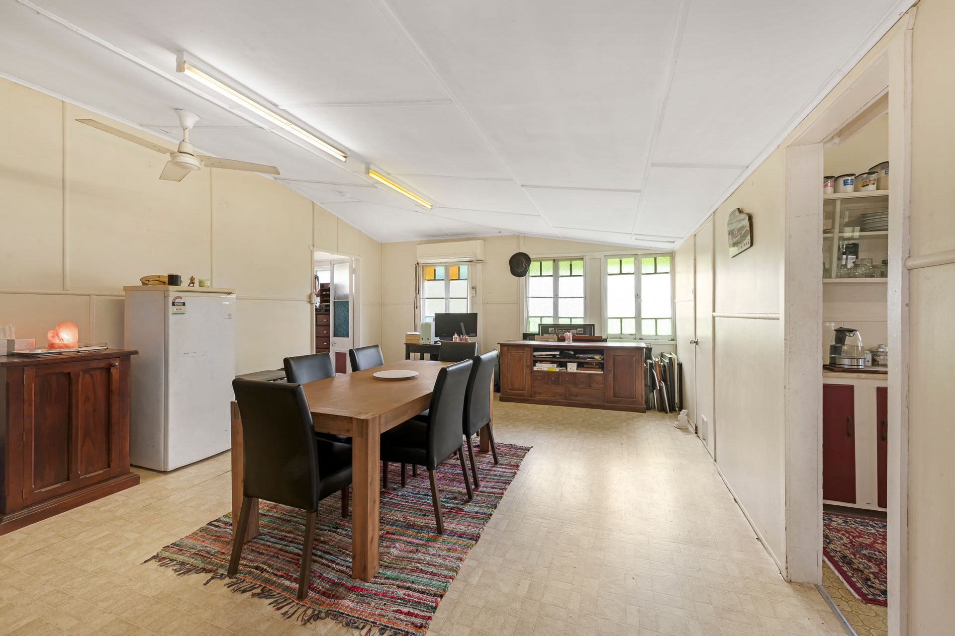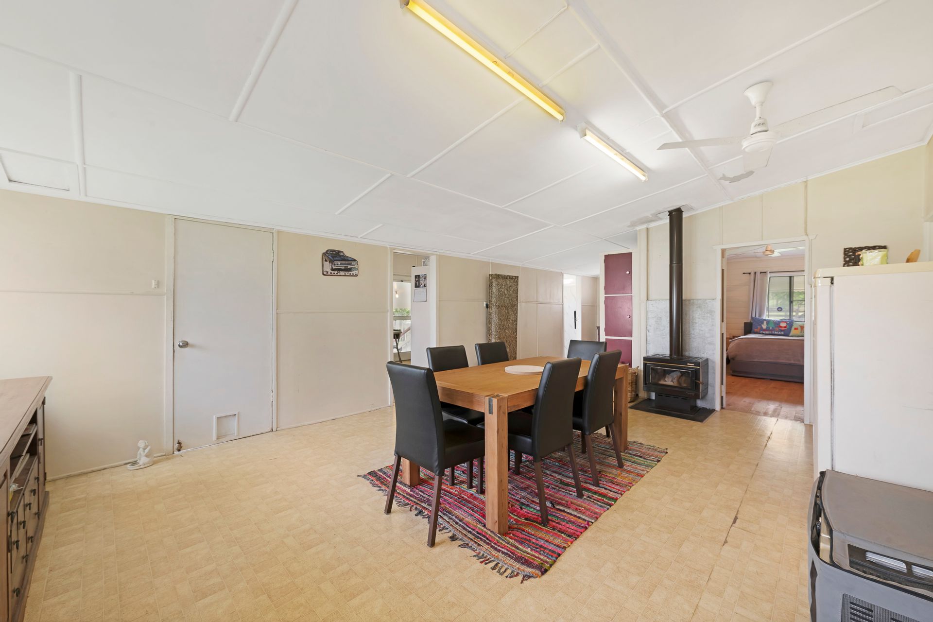- Airconditioned Dining Room with Wood Heater and a Wall of Storage Space