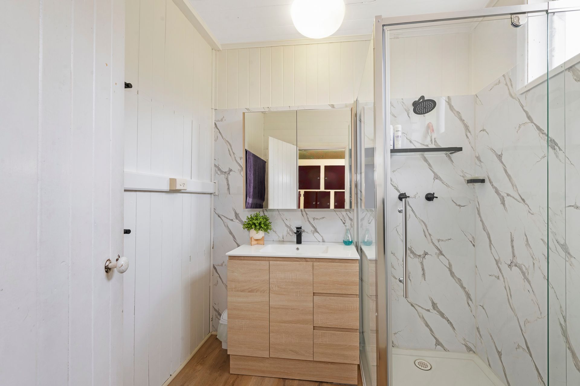 - Renovated Family Bathroom featuring a Shower and Vanity