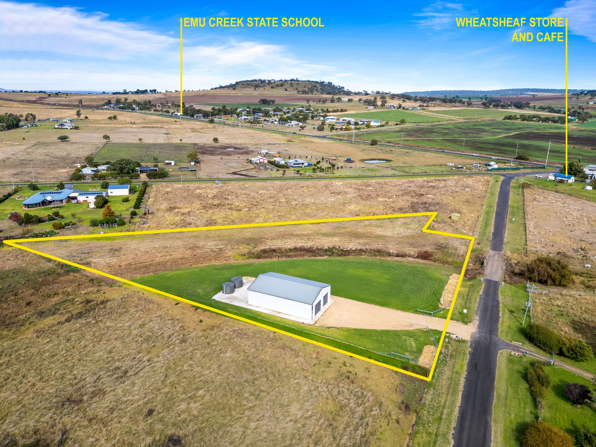 3 Phase mains power is connected to property, only 2km to Emu Creek primary school, garbage service and mail service available.