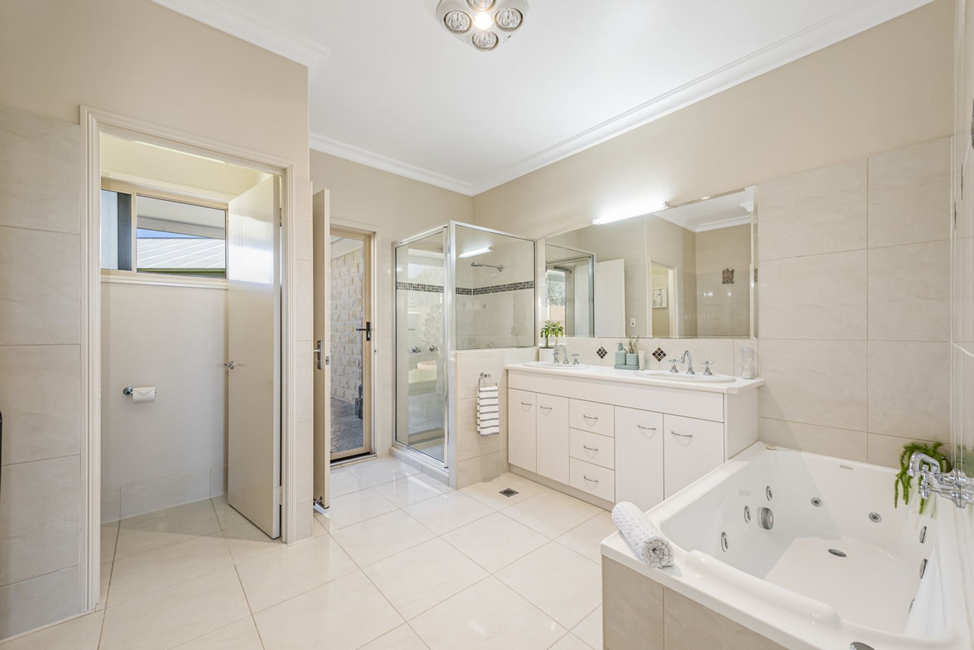 - Huge family bathroom with double vanity, separate spa bath and shower plus toilet