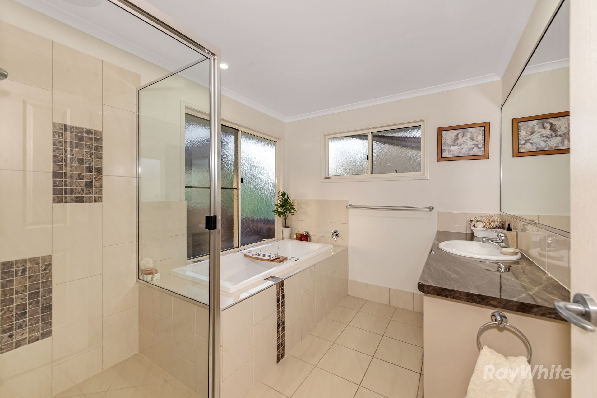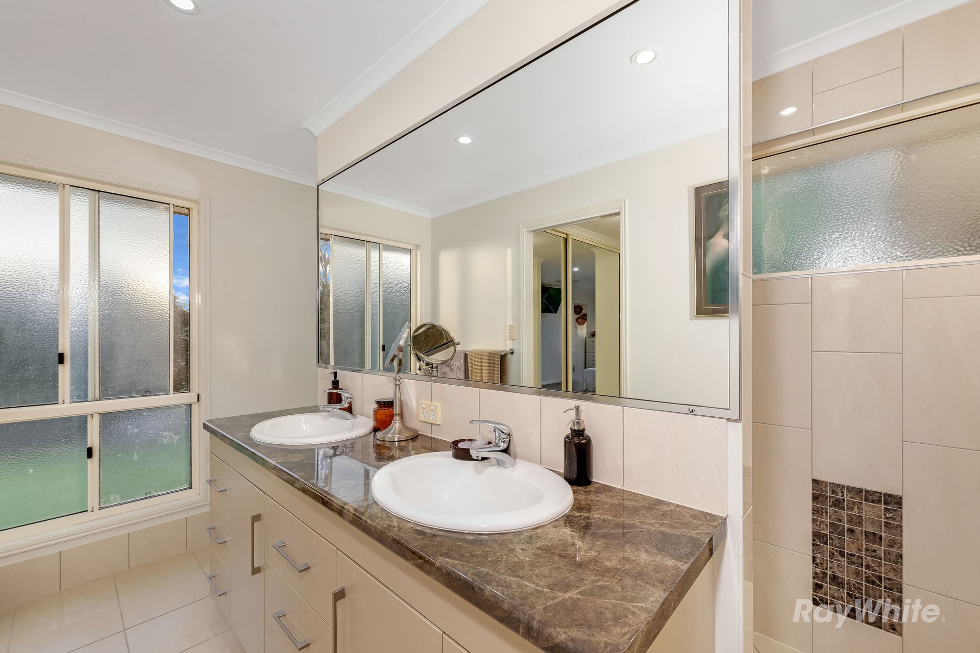 - Airconditioned Master Suite features a Walk-Through Robe, Ensuite with Stone Look Benchtops, Double Vanity, Large Walk in Shower & Toilet
