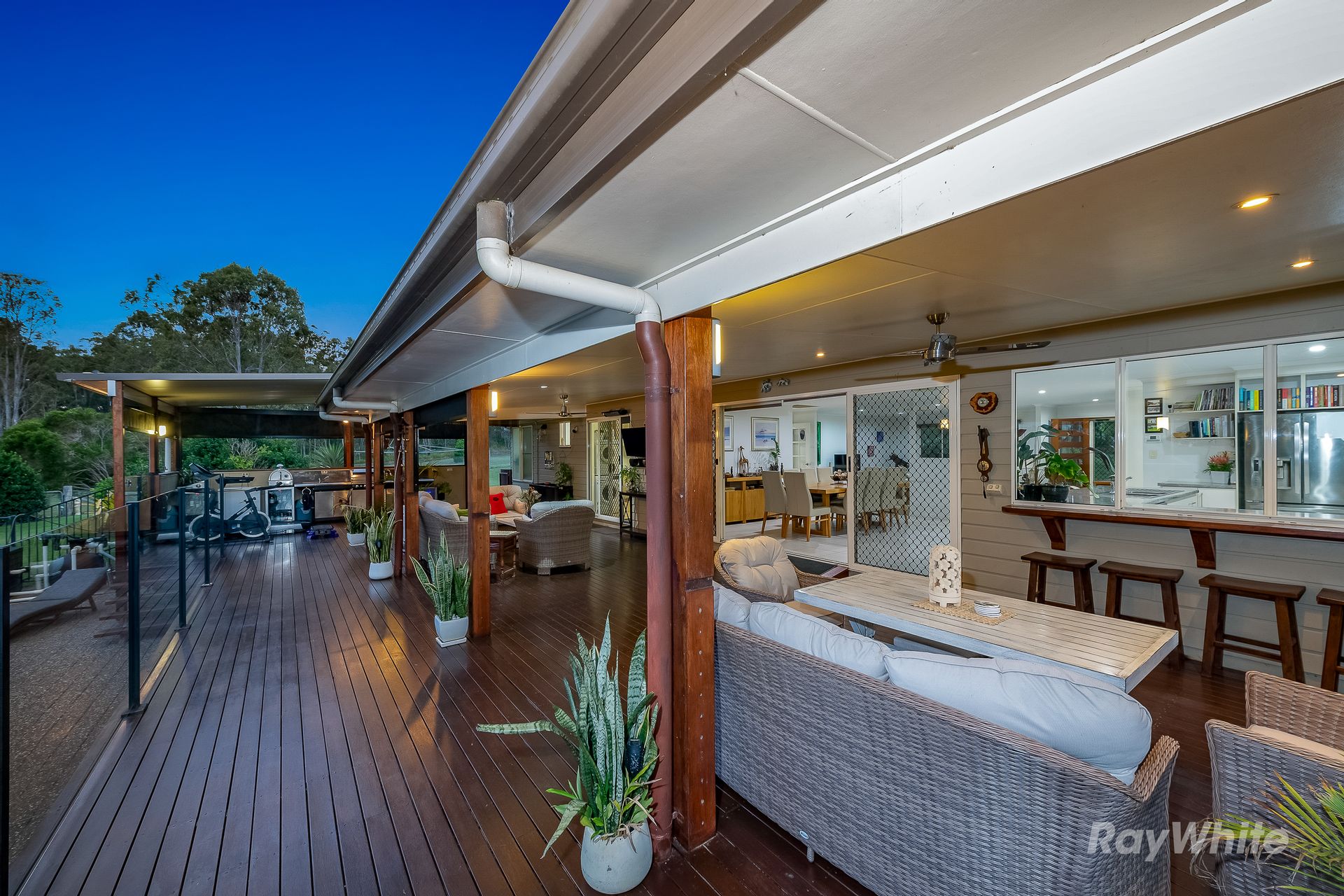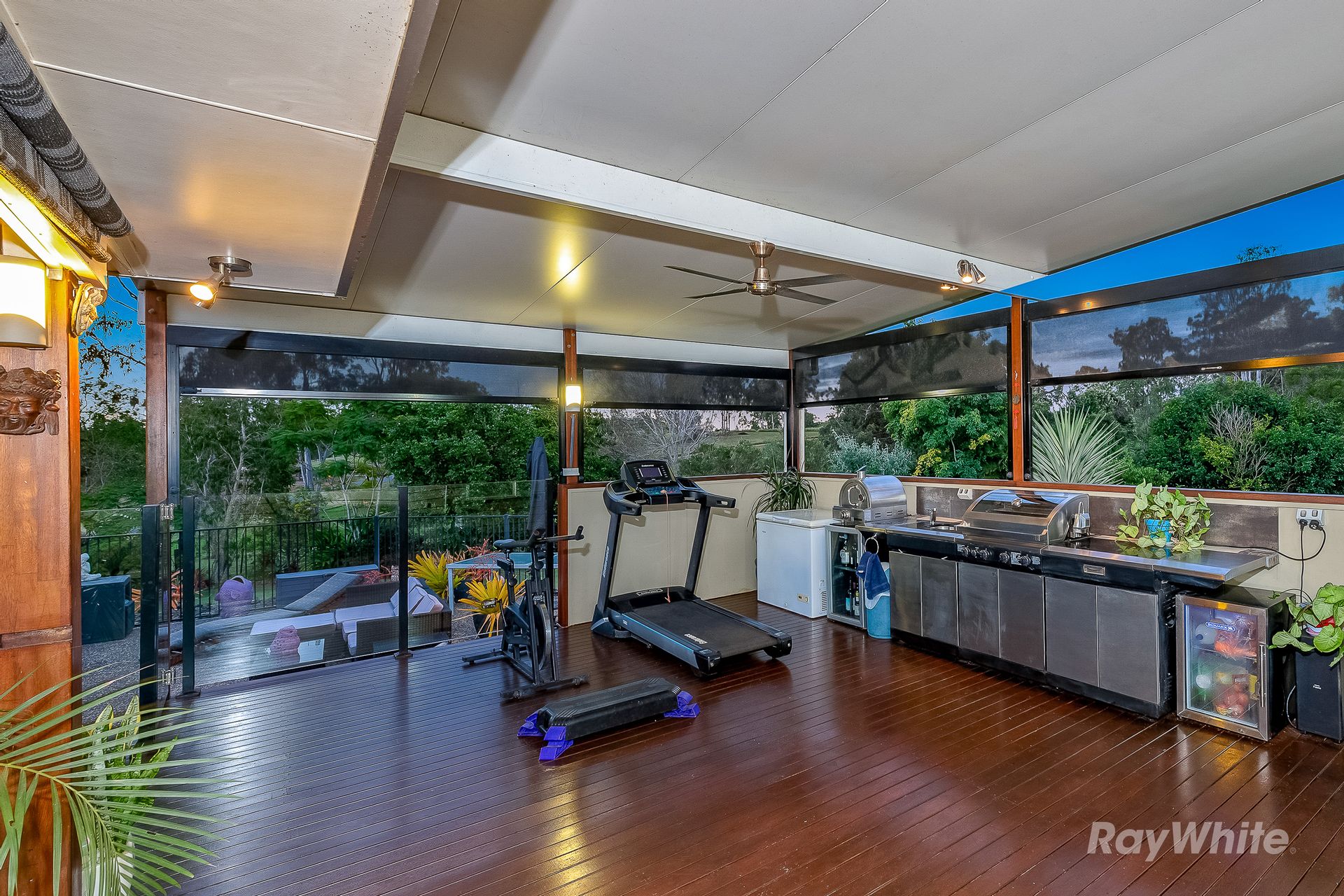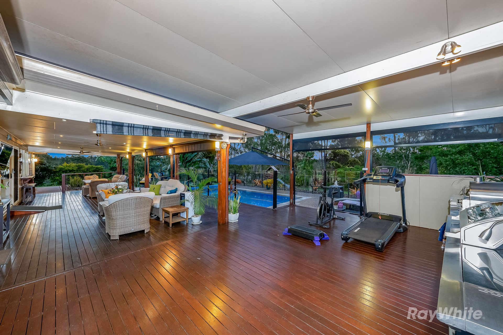 - Impressive Undercover Outdoor Area overlooking the Pool features Glass Pool Fencing, Built in Outdoor Kitchen with BBQ Area as well as space for a Home Gym, Casual Drinks and Snack Spot at the Kitchen Window, Formal Dining Space and Seating Area for watching the Football with Friends on Friday Night on the Outdoor TV.