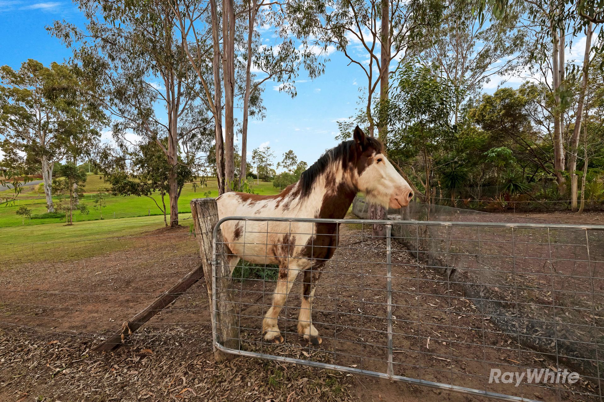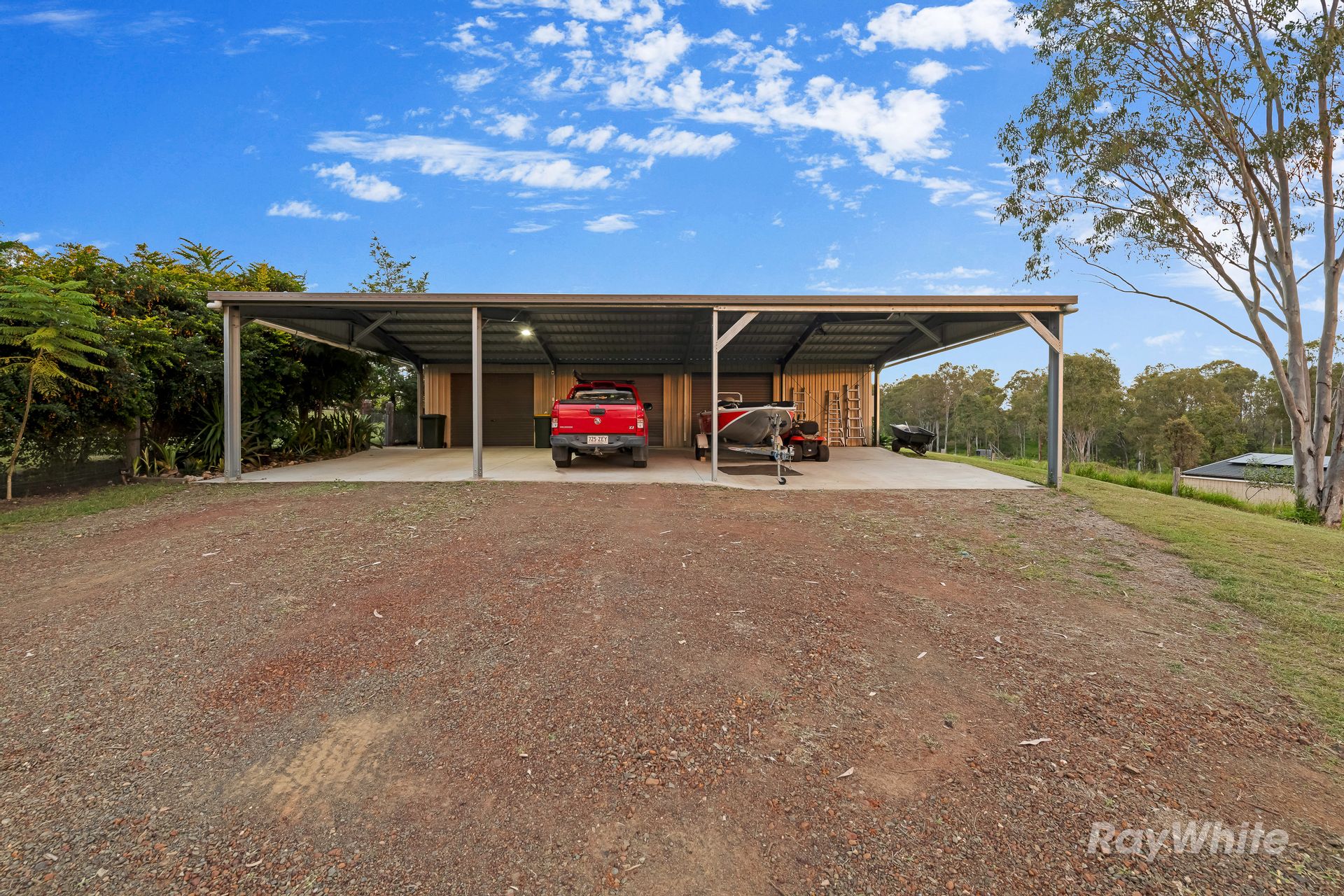 The property is a paradise for equestrian enthusiasts, with boundary fencing and a house yard featuring micromesh. The dedicated horse paddock includes an automatic watering trough, shelter, and electric stand-off fencing. Ample parking and storage are available with a 4-bay garage that includes a concrete floor, power, lights, whirlybirds, and four 27,000L rainwater tanks, as well as an attached 4-bay carport with a concrete floor and caravan bay.