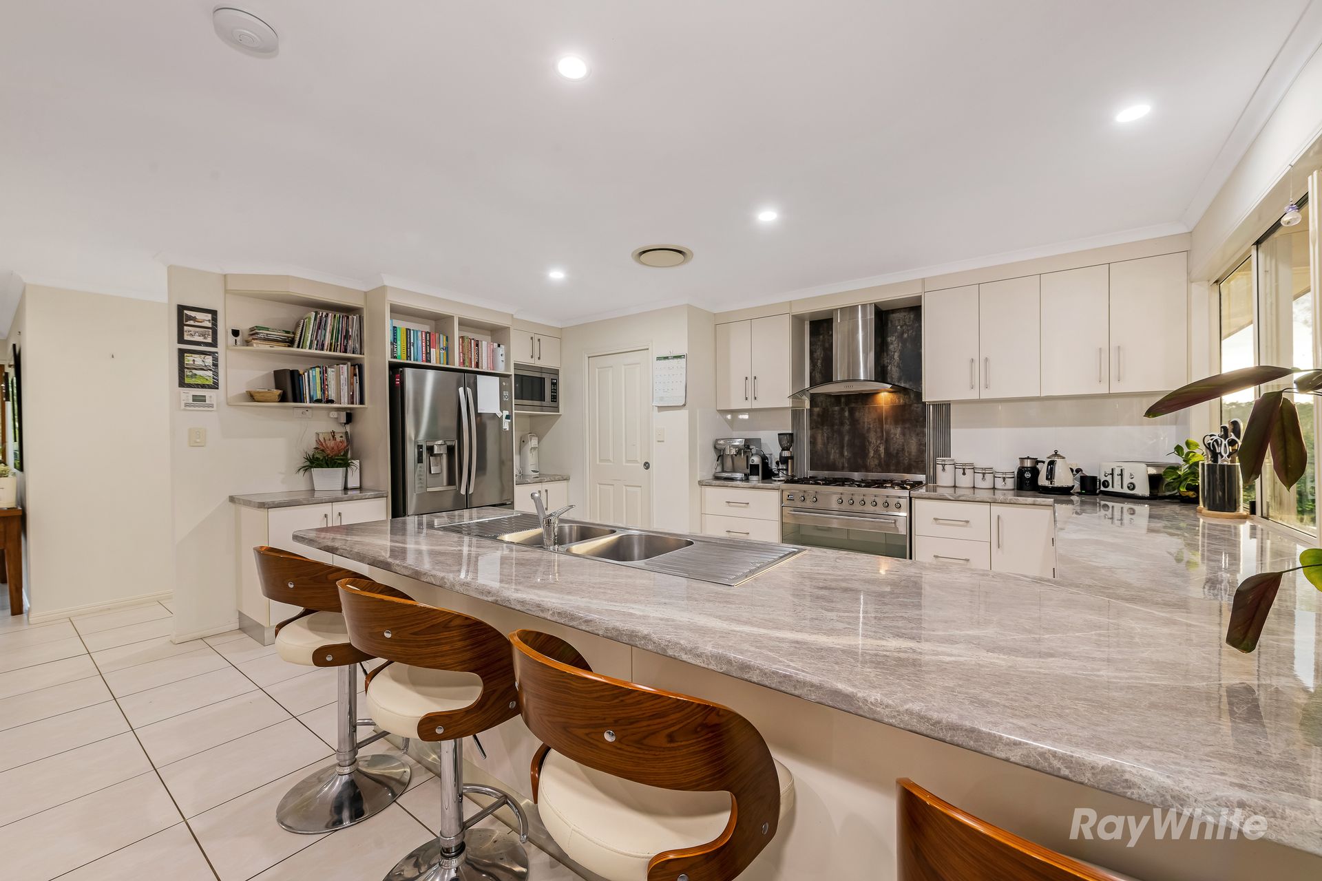 - Kitchen features Large Freestanding Gas Cooktop/Electric Oven, Rangehood, Dishwasher, Walk in Pantry, Stone Look Benchtops, Abundance of Storage, Breakfast Bar and Severy Window