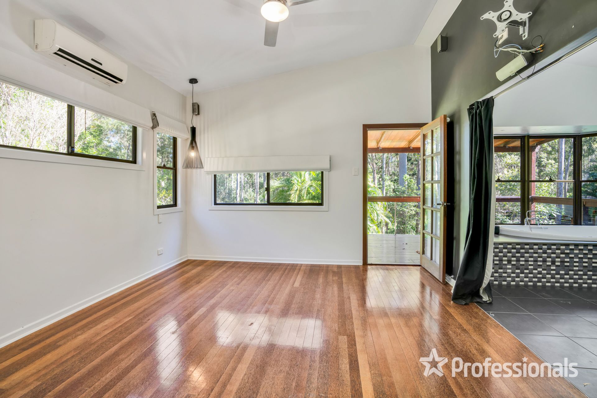 • Air-conditioned main bedroom with dual walk-in robes, direct access to private rear deck and huge upgraded ensuite with featured spa bath, double vanity, separate toilet & shower room