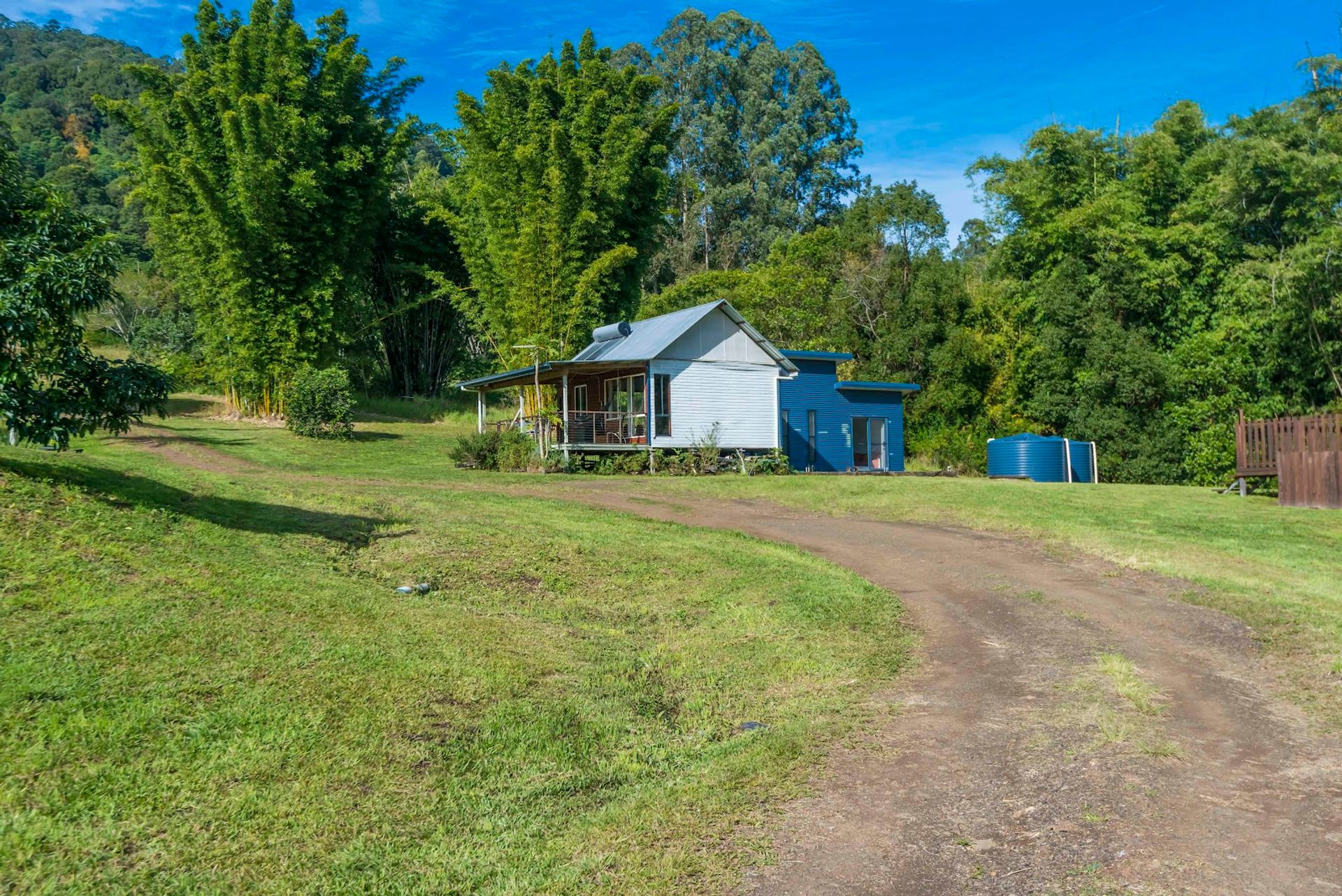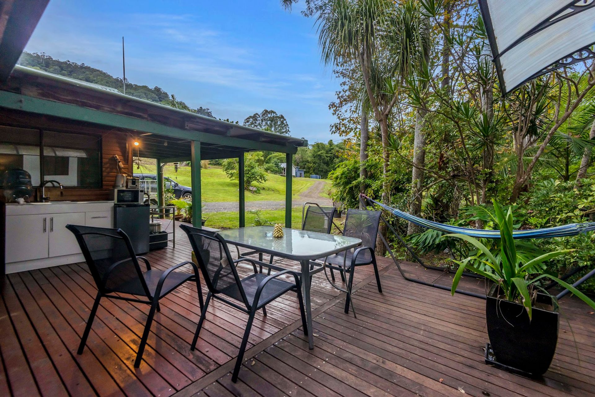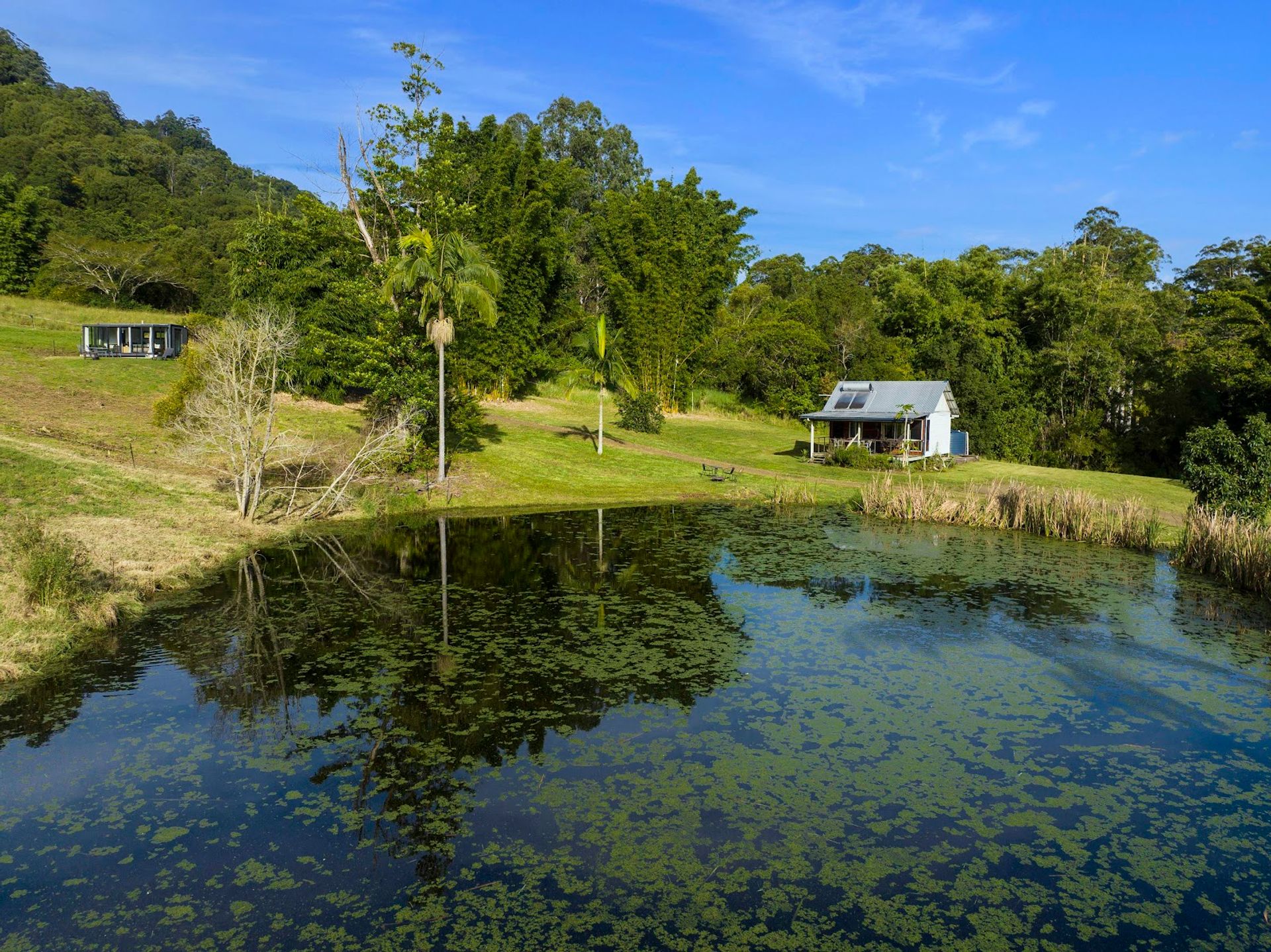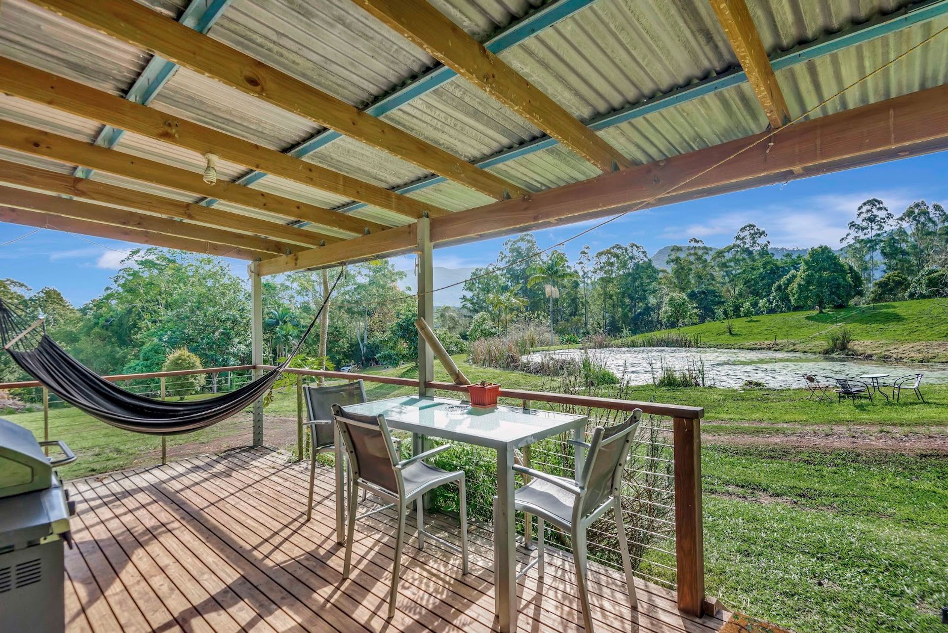 A small jump skip and hop up the driveway you will come across the very attractive cabin which overlooks the dam and onto the Nightcap Ranges. This structure has been freshly painted and is modernised. The deck is a great spot for relaxing and unwinding.