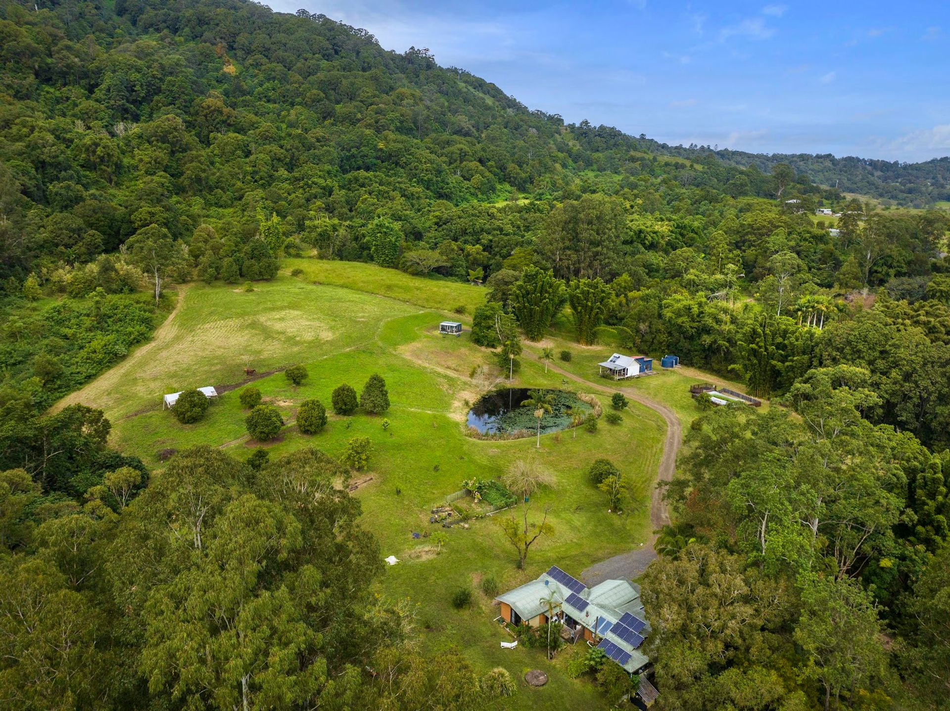 On the property there are three dams, an amazing waterfall, 5.2 Kw of solar, a macadamia orchard, fruit trees and a veggie garden. Becoming semi self sufficient is not far away.