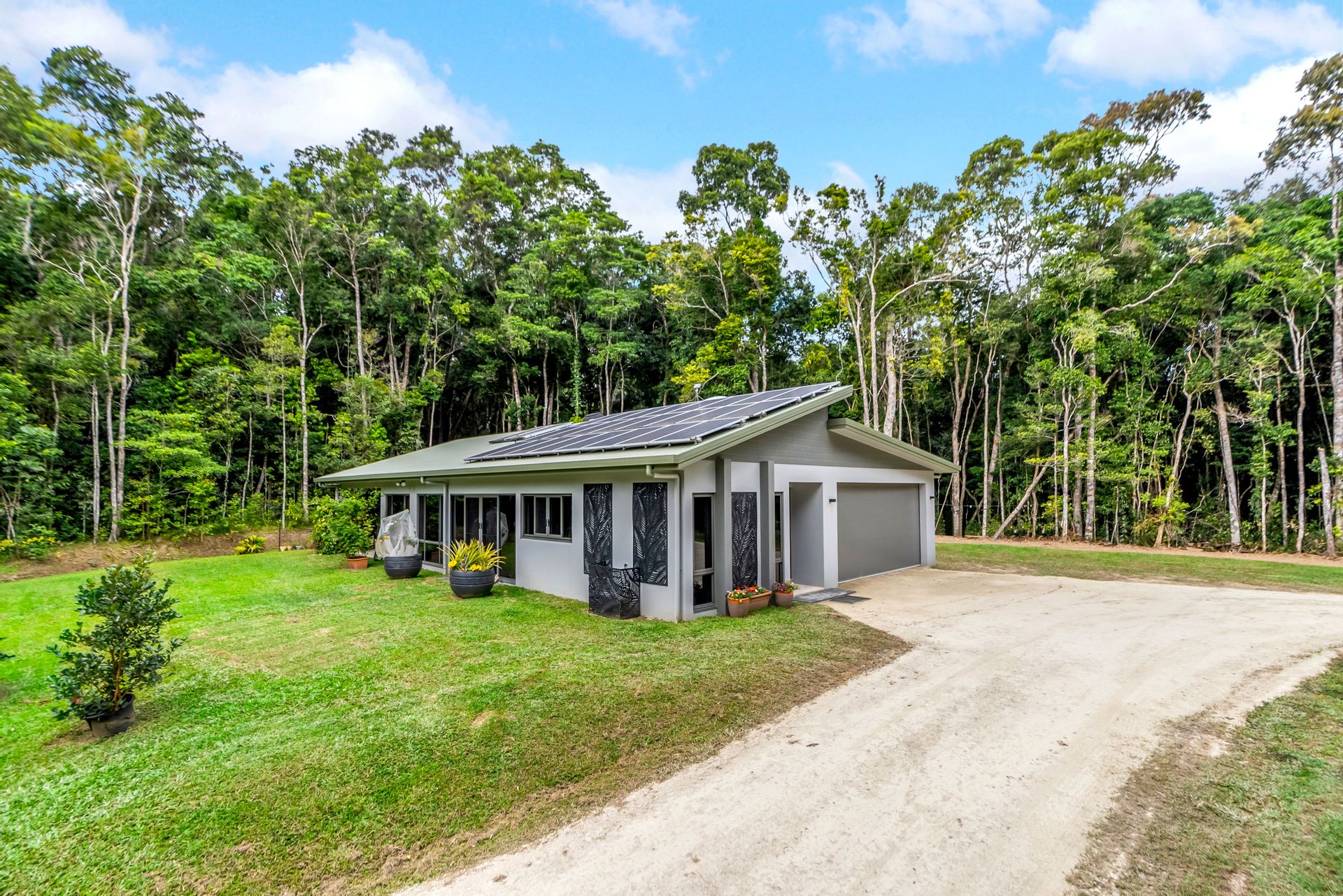 The home has been designed and built to be totally self-sufficient with both power and water run from a Victron 5.4kw solar system, with eight back up lithium batteries, the bore pump at the front of the block also has a separate solar system.