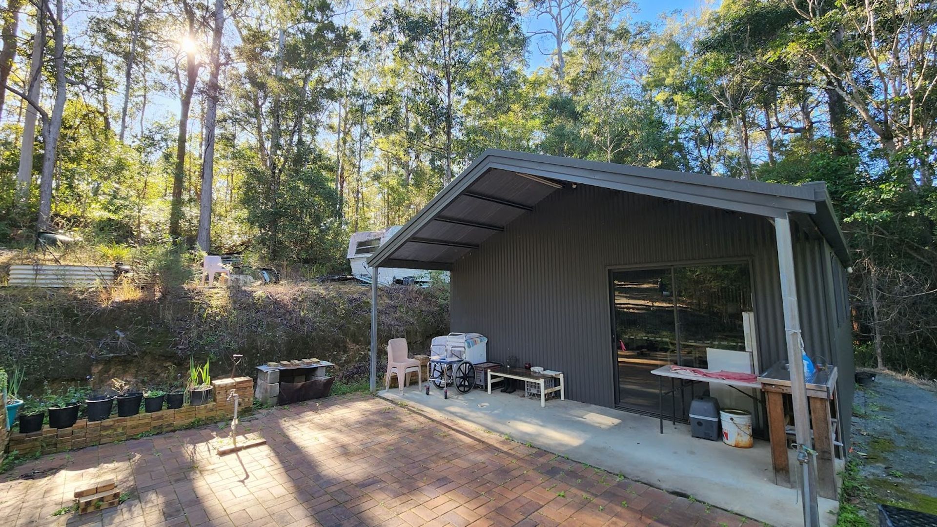 - Liveable shed / house pad / power / water tanks