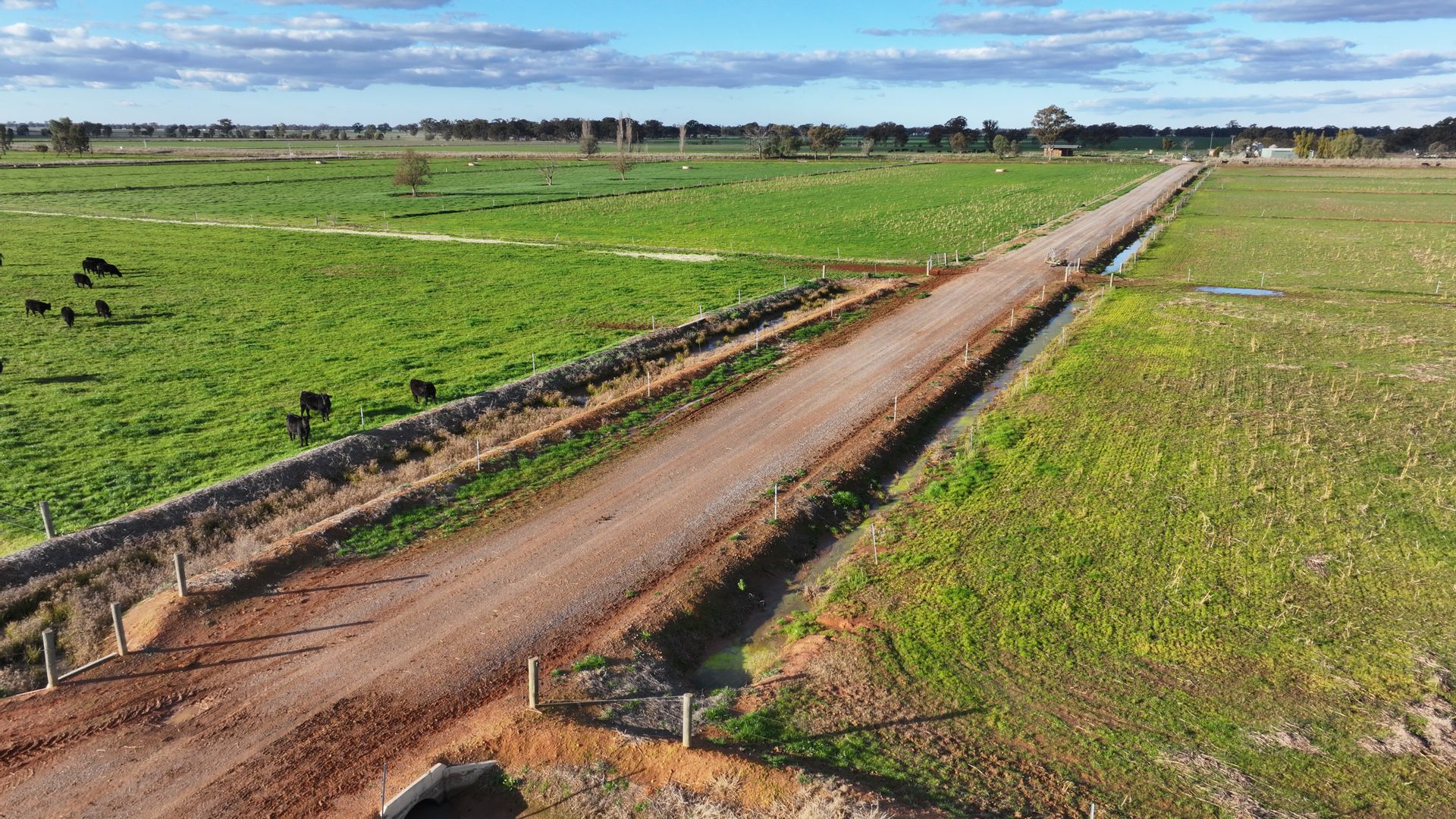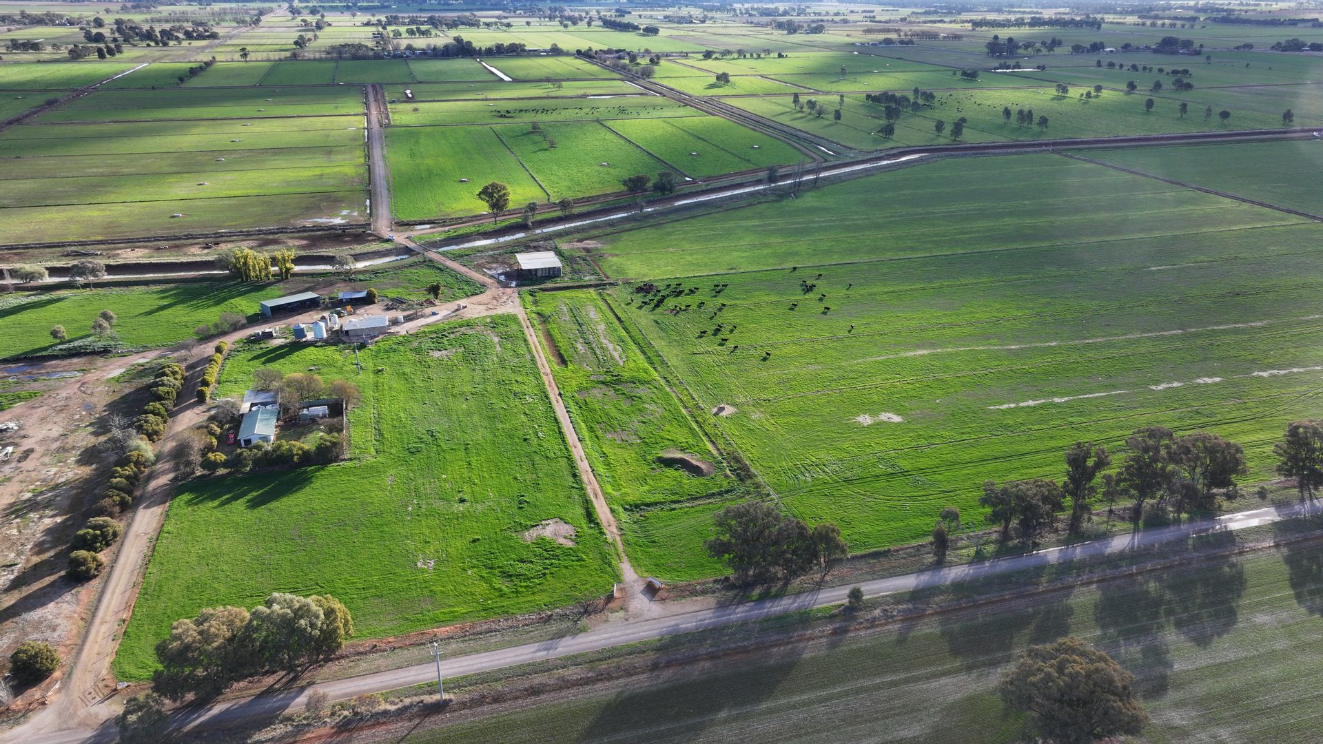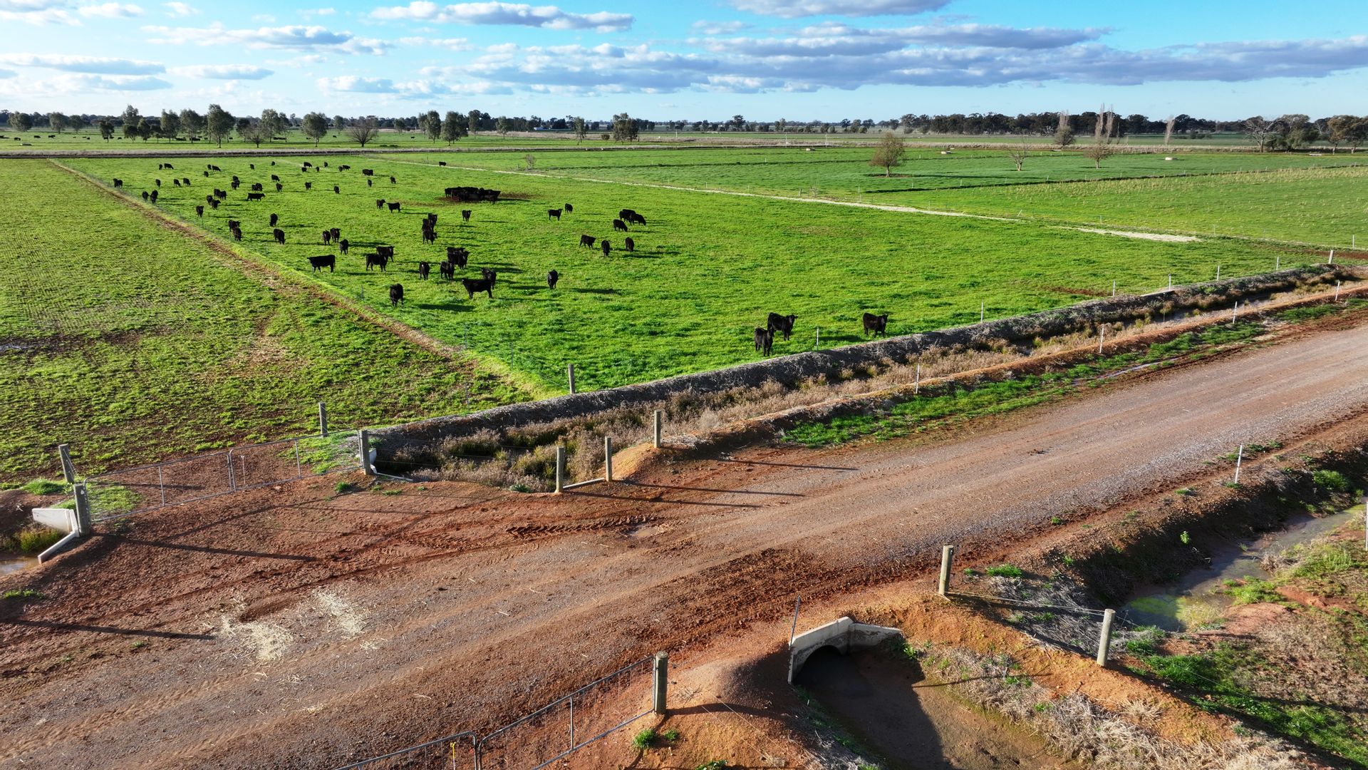 This property is currently running angus cows/calves and has had extensive earth works and irrigation works completed. Features include all-weather formed looped gravel laneways suitable for all and any large machinery plus ease of cattle movement throughout the property with double gate access to most lasered paddocks. No issues with water with the Main Eastern Goulburn Murray irrigation channel supplying the property directly offering the availability of ordering large megalitres to be used quickly and efficiently on many fodder options. Approximately 85% has been lasered with no expense spared in development with concrete headwalls and cross overs, large Padman stop outlets for fast on off irrigation onto long lasered bays, recycle sumps and pumps for added water savings, 2-inch water pipeline suppling large concrete water troughs means no cattle stress in the warmer weather plus electric fencing throughout. Stock & domestic connected and only 3 delivery shares, hay shed, and machinery shed plus 3-bedroom home with kitchen dining area second living area and all amenities.