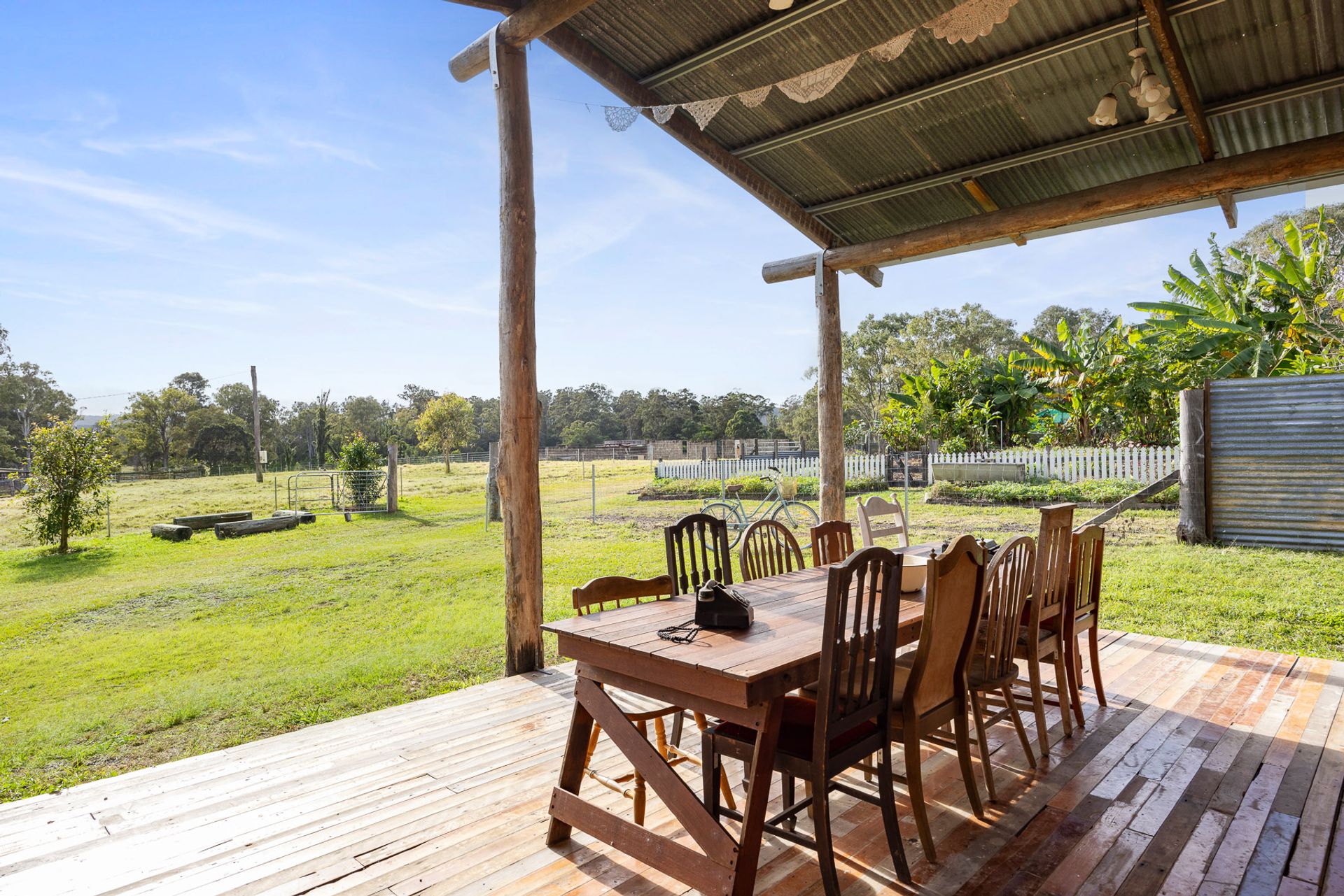 As you step onto the front porch of the homestead, you'll be greeted by the enchanting original features; from the wrap-around verandah, to the 10ft high ceilings, VJ walls and ceiling, original timber doors and the beautifully reclaimed bunya pine kitchen floor. This large family home radiates warmth and character.
