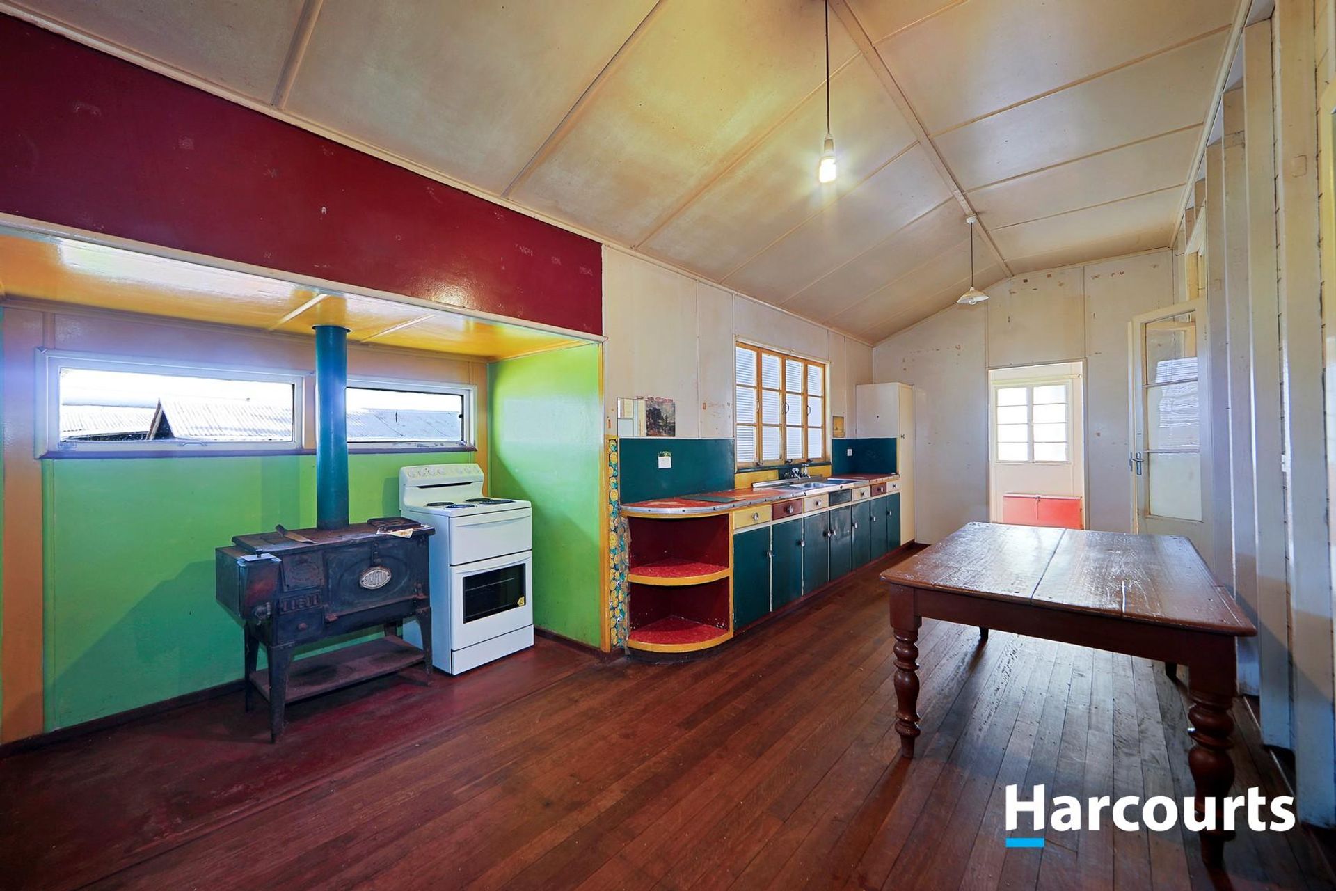 * Original kitchen, with original woodstove & traditional electric oven & stove