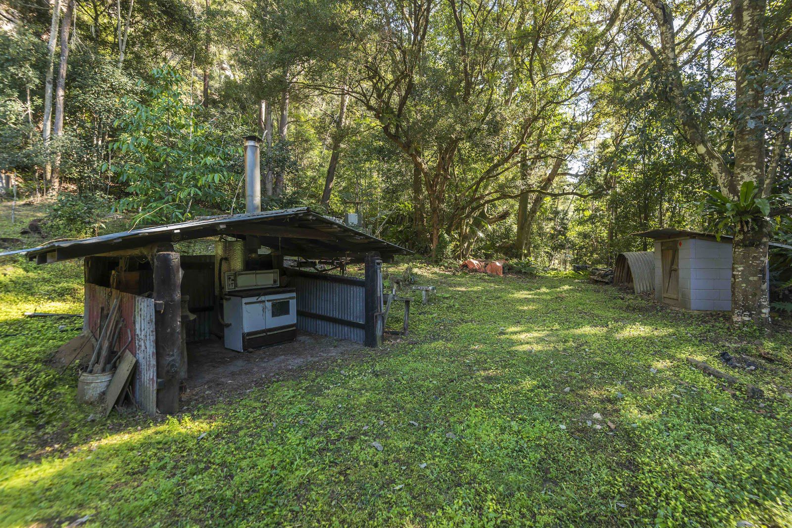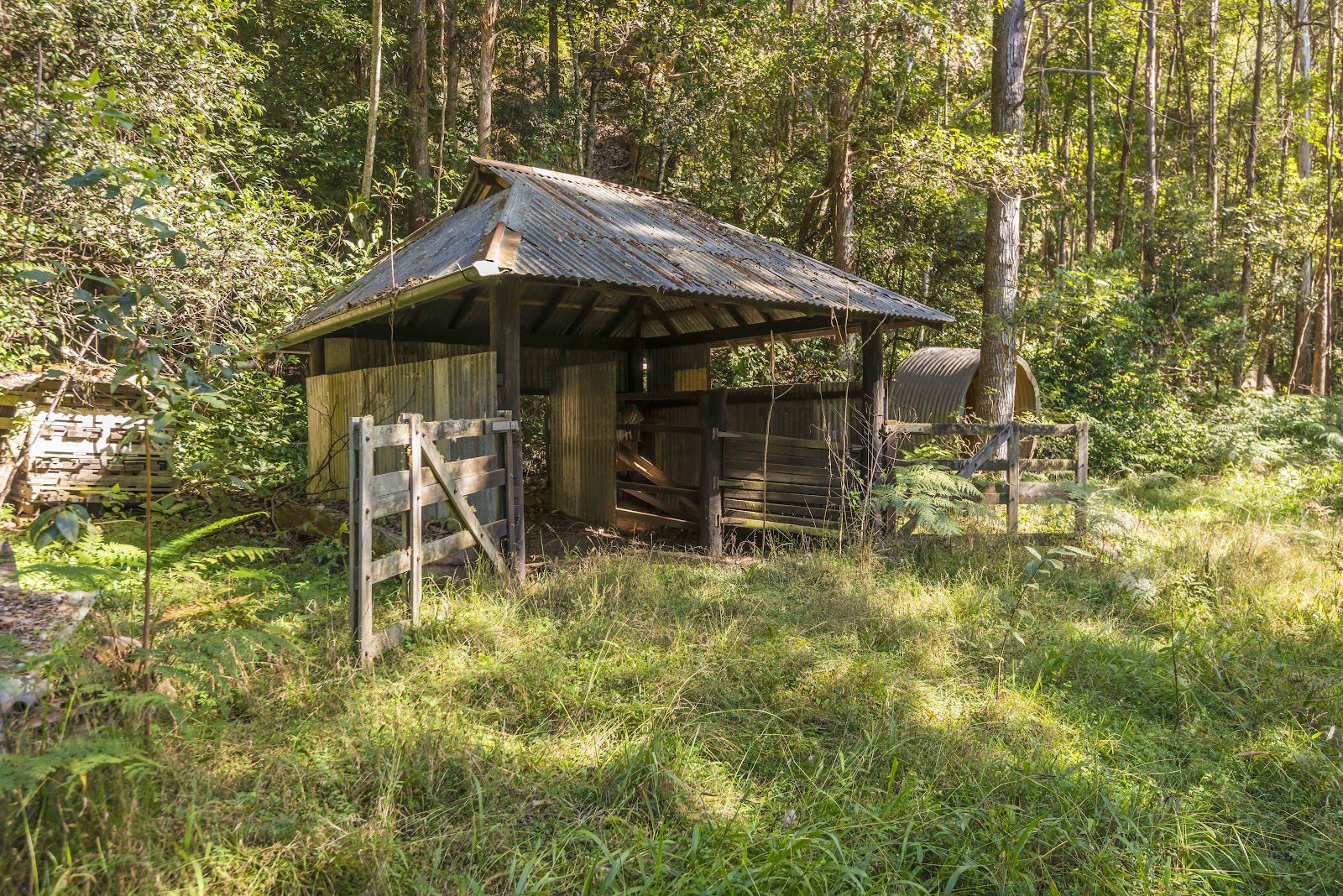Across the road there is a thin strip of land between the road and the creek which is home to a set of aged but solid timber cattle yards including a race and professional head crush. The creek is home to many great swimming holes, the water is fresh, flowing down from Mebbin National Park AKA The Border Ranges.