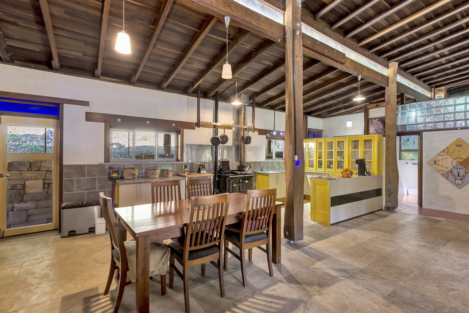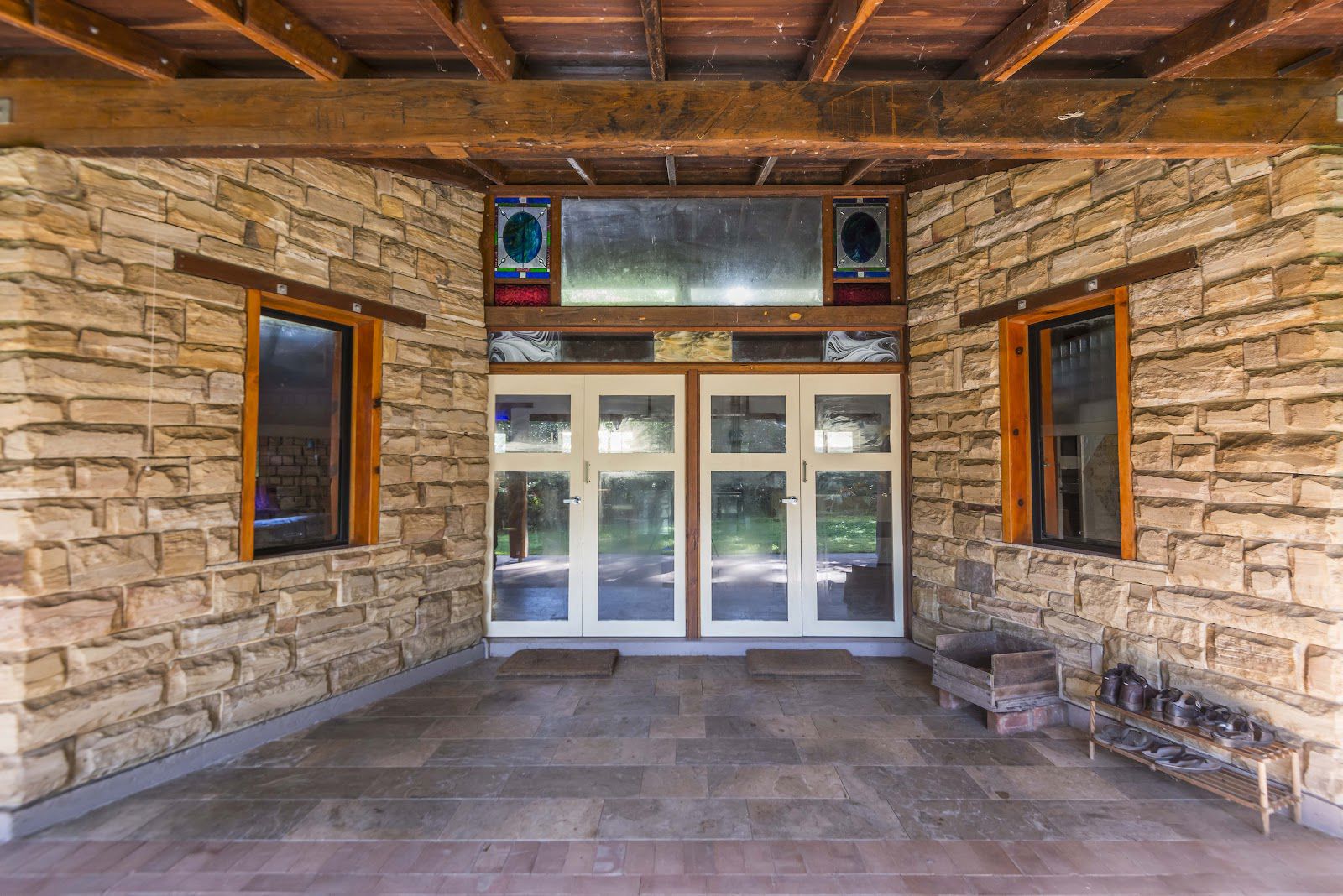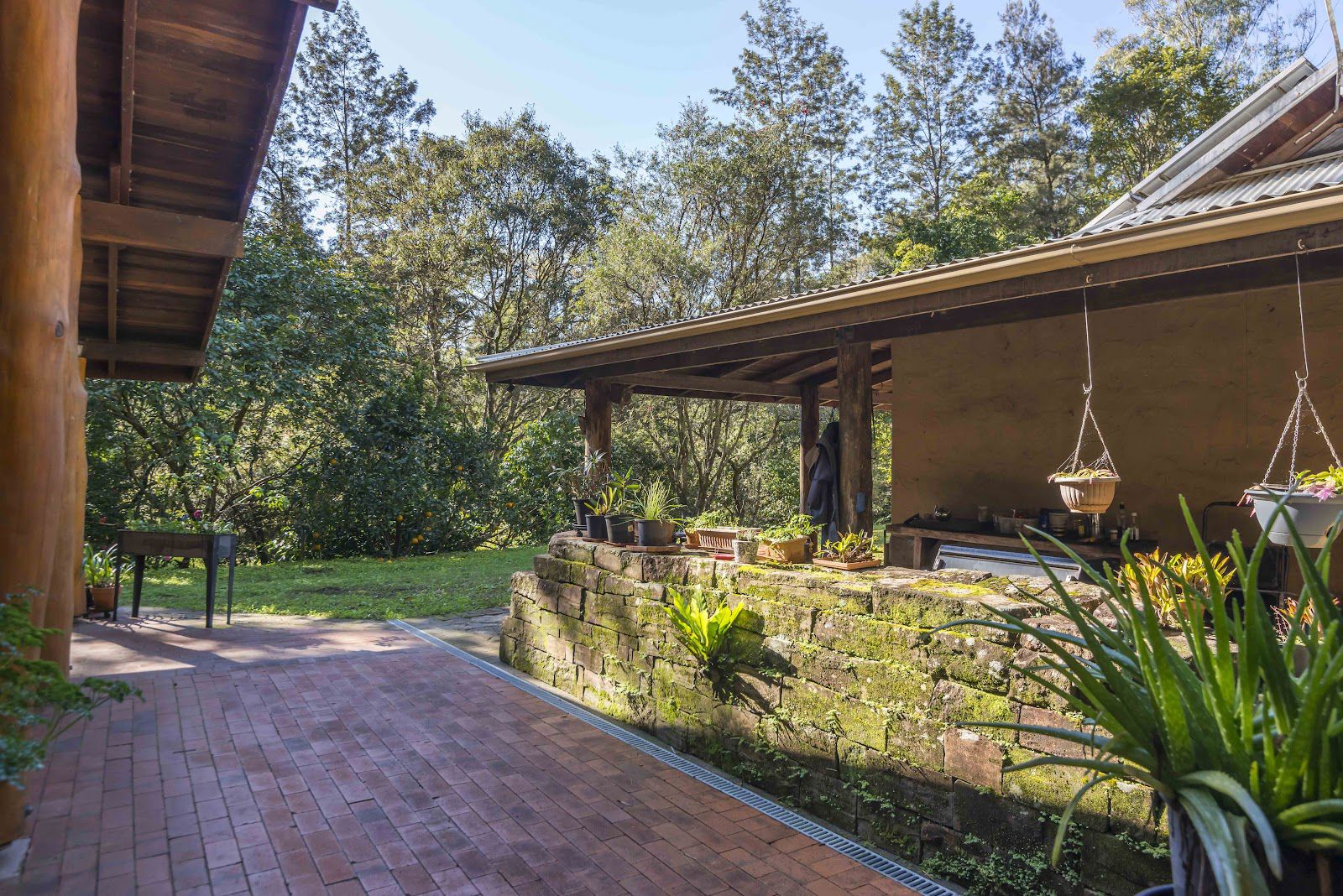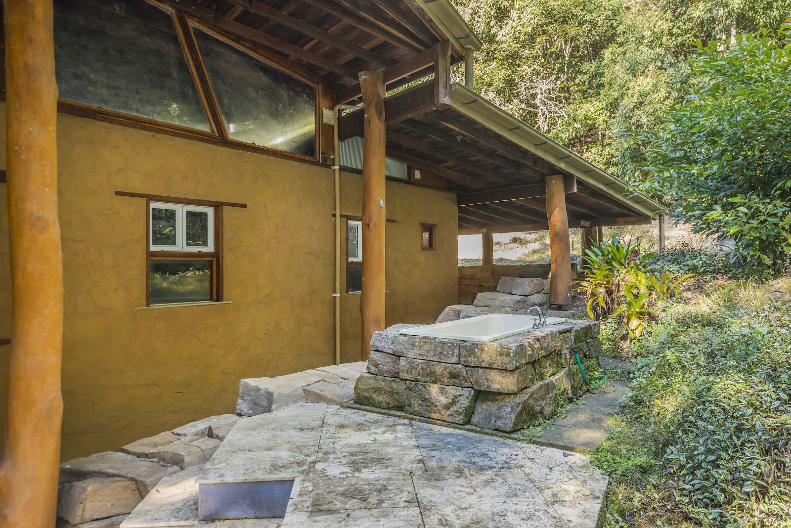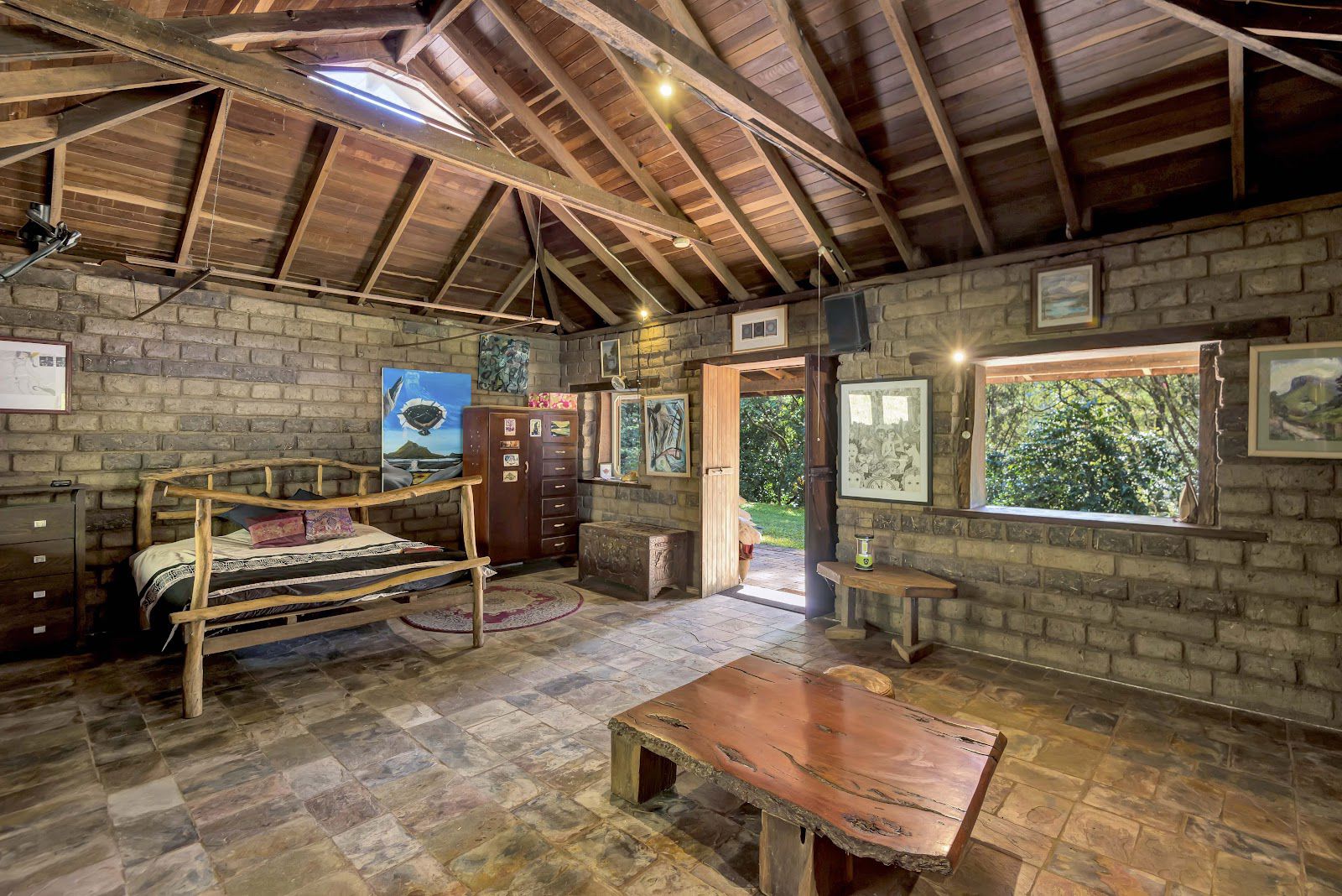 The studio features slate flooring, high ceilings with exposed timber beams, a wood heater and gorgeous barn style windows. Both structures have sandstone retaining walls and are paved all around the exteriors making them accessible in wet times.