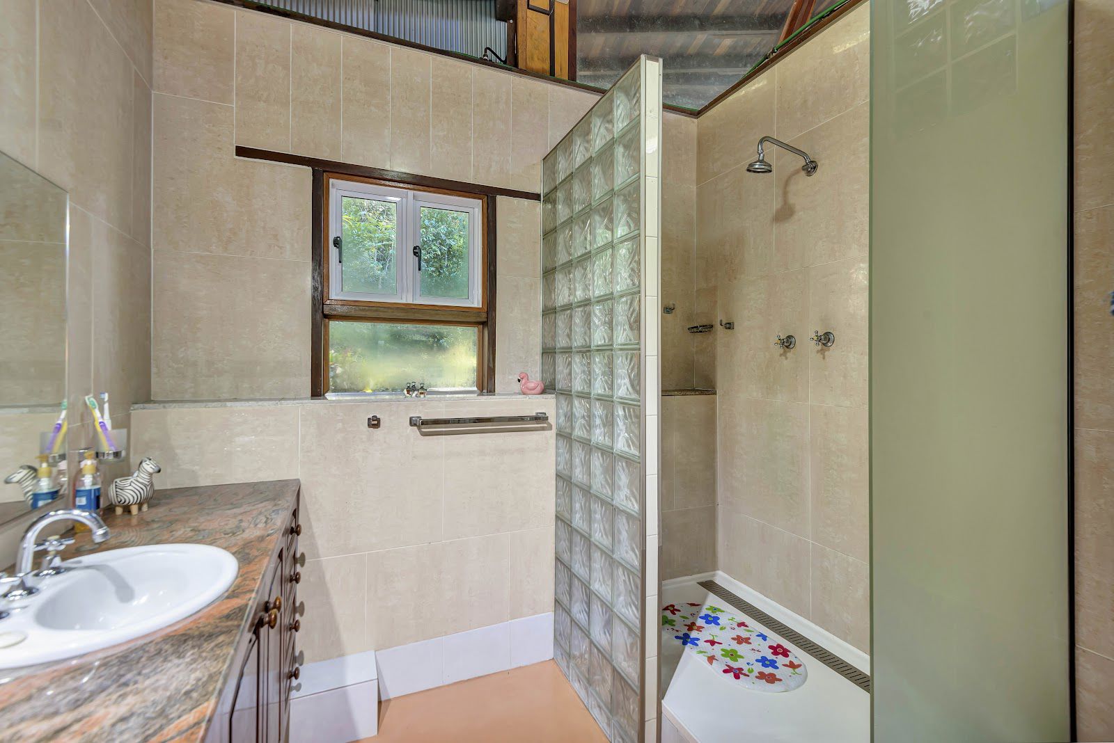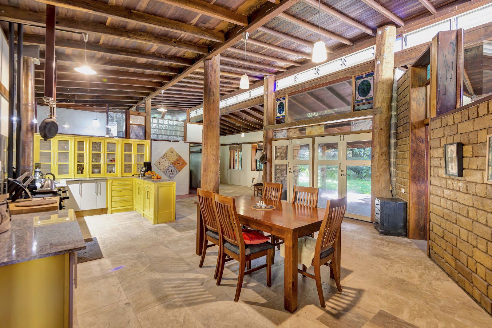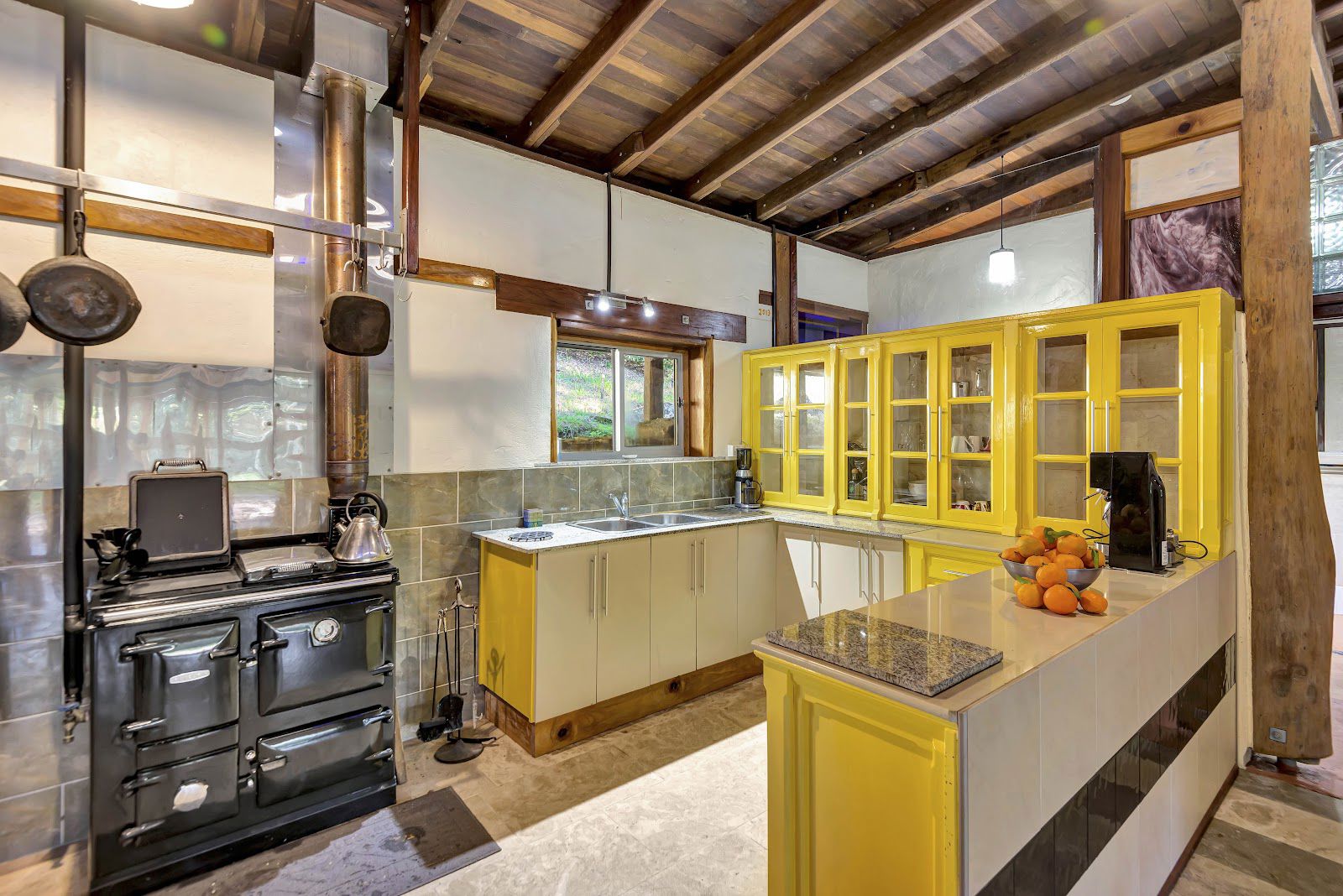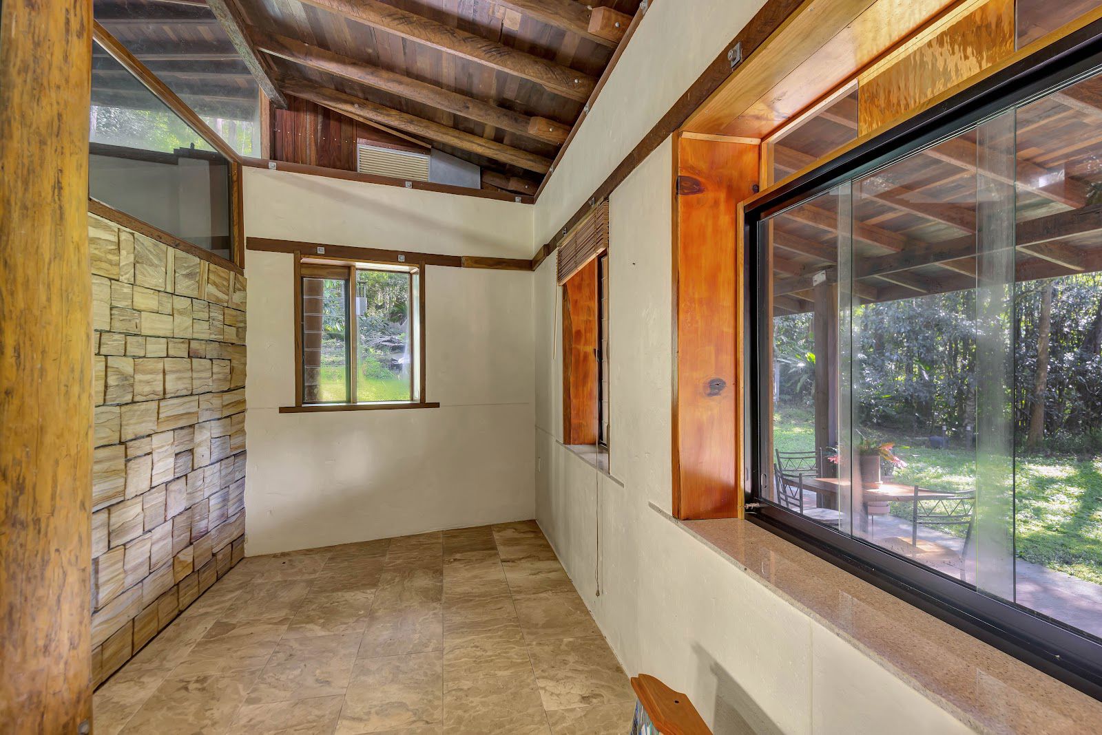 The three rooflines consist of a well built carport, a studio style master bedroom with barn style timber windows, and the masterpiece home which is currently one bedroom, that could very easily converted into a two bedroom home. The home consists of stained glass, super high ceilings, rustic timber poles, marble floors, marble & granite bench tops + more.
