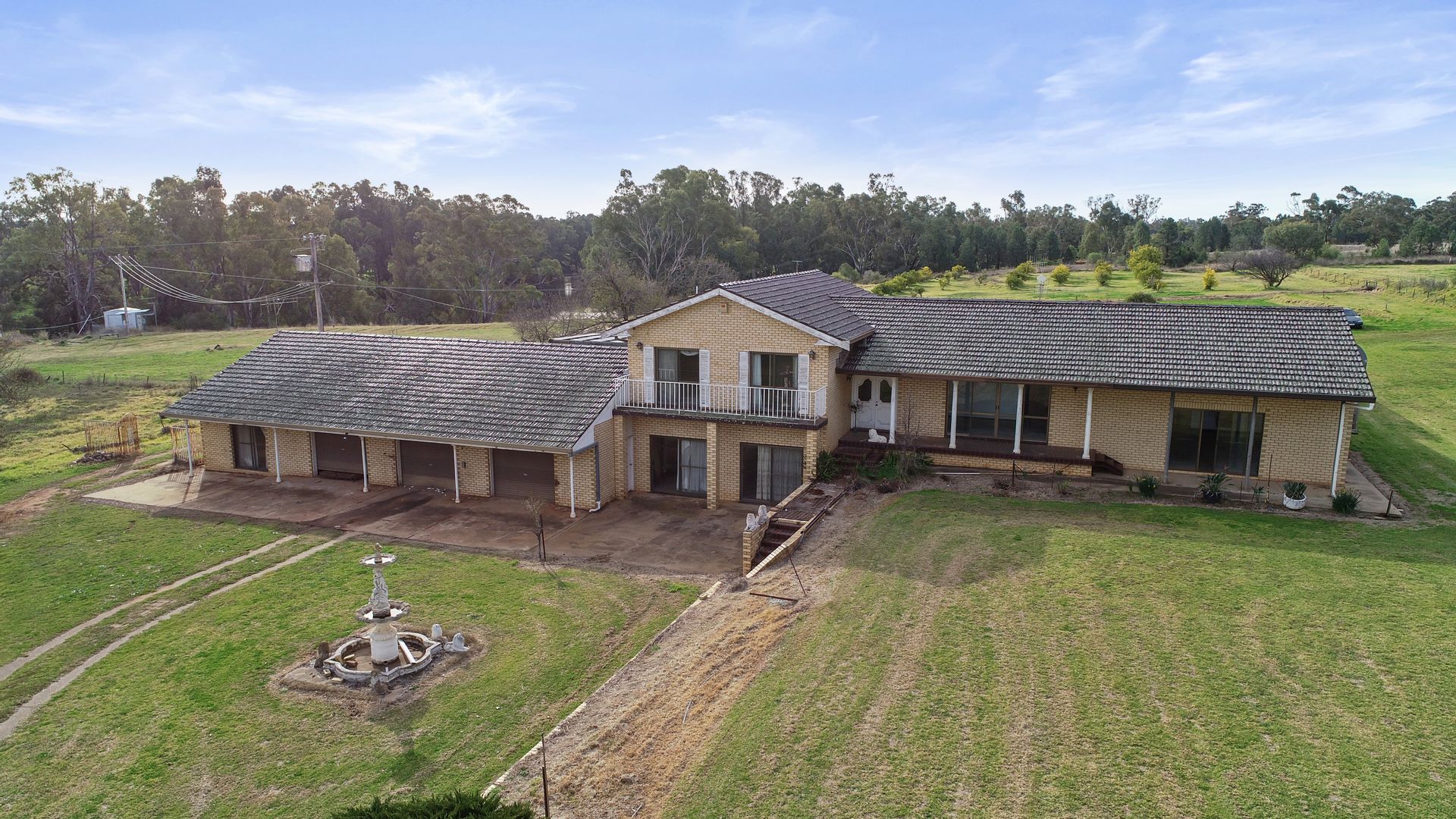 Improvements include a large double brick multi level home of four bedrooms plus a one bedroom granny flat. The home is in original condition having been built in the early 1980's. Included are 3 kitchens and 4 bathrooms: numerous living rooms including two dining areas, family room, lounge room, living room, games room and billiard room; wood heater, evaporative air conditioning; large car port/covered entertainment area with cool room; three garages; inground pool which is non-compliant; green house & garden shed; the home is set in a vast garden that provides appeal on entry along with an established orchard..