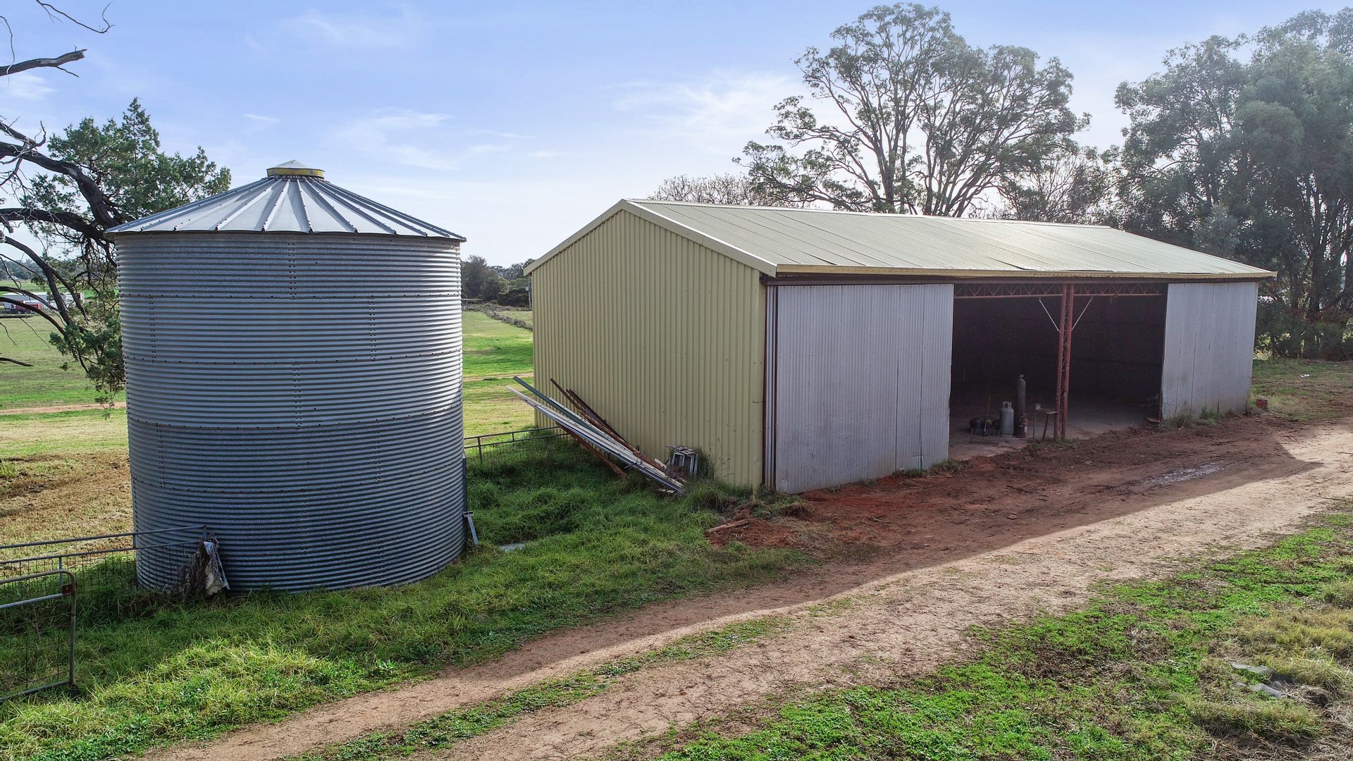 Working improvements include a flat bottom 50 tonne silo; 4 bay, steel framed, enclosed machinery shed with concrete floor; enclosed steel framed machinery/hay shed with semi enclosed rear skillion.