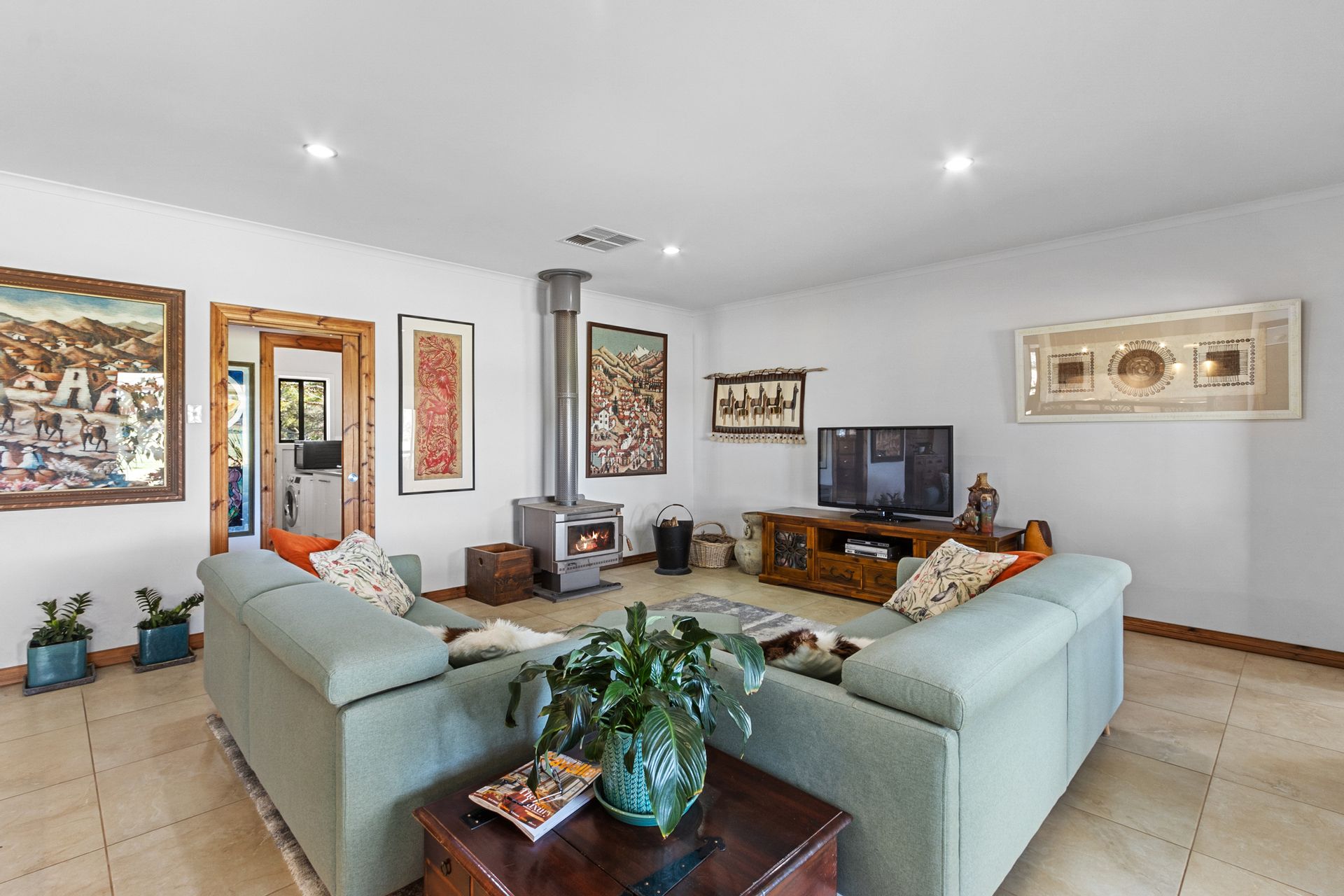 Comfort and Climate Control: Wood combustion heating, ducted evaporative cooling, ceiling fans and split system R/C A/C.