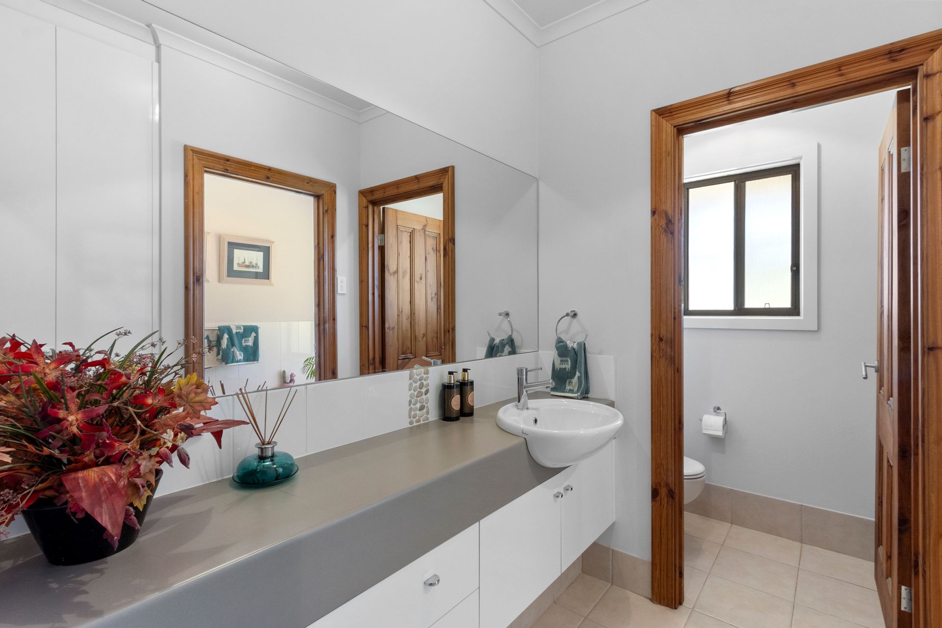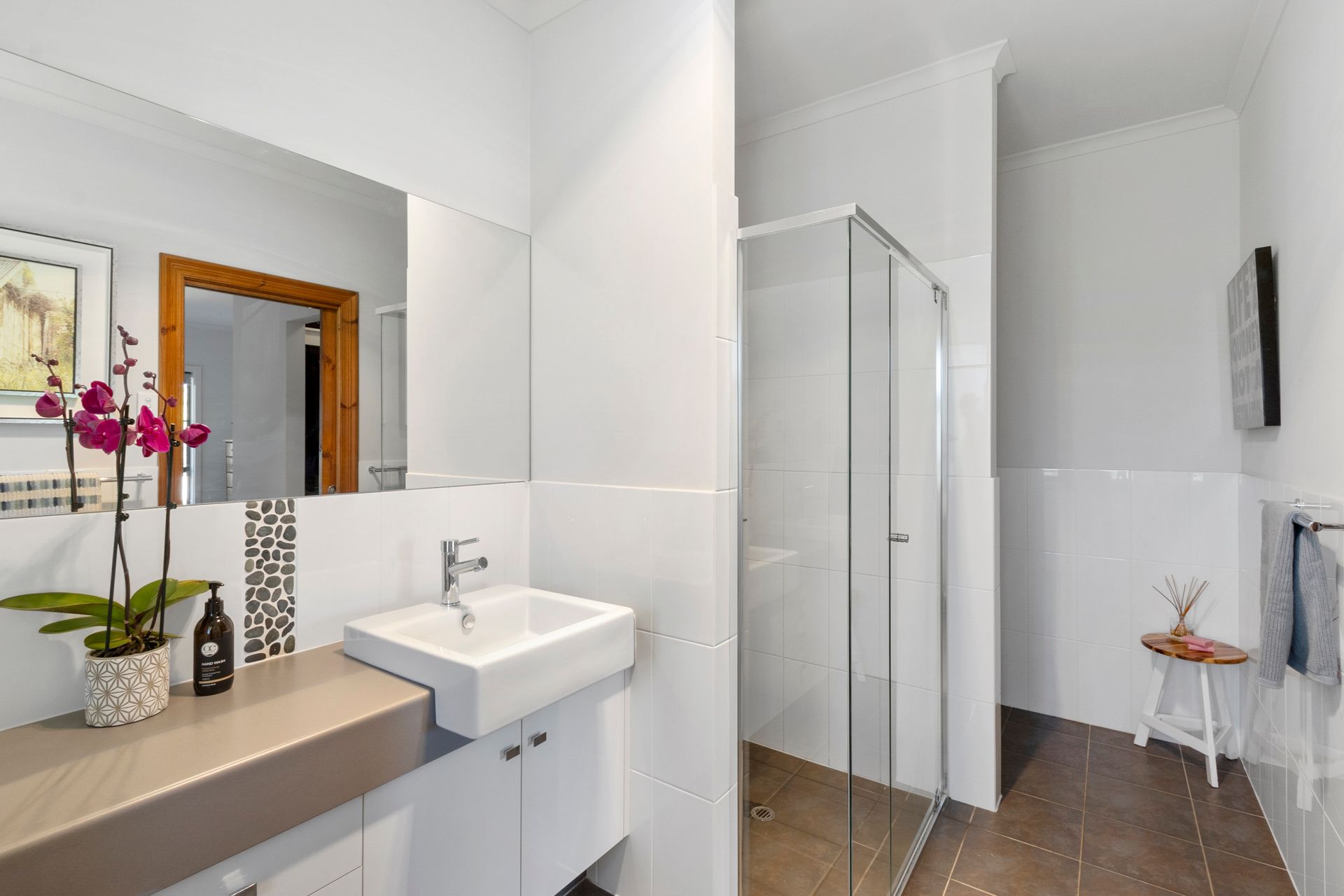 Main Bathroom: A three-way bathroom for added convenience.