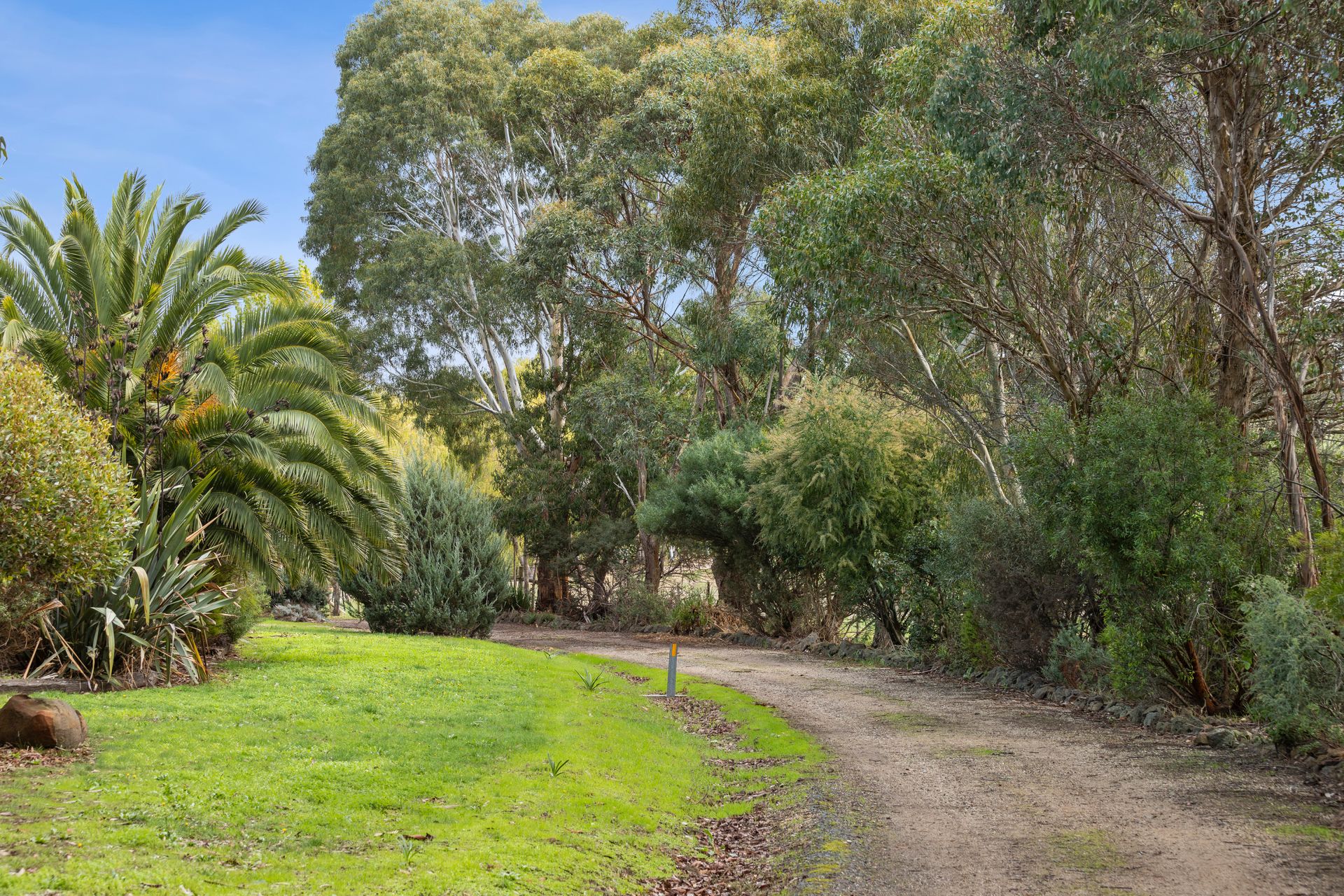 A long return driveway flanked with mature trees and views of the three lush paddocks, the seasonal creek and the tree lined dam is a lovely introduction. At its end, through the forested area, discover the private home.