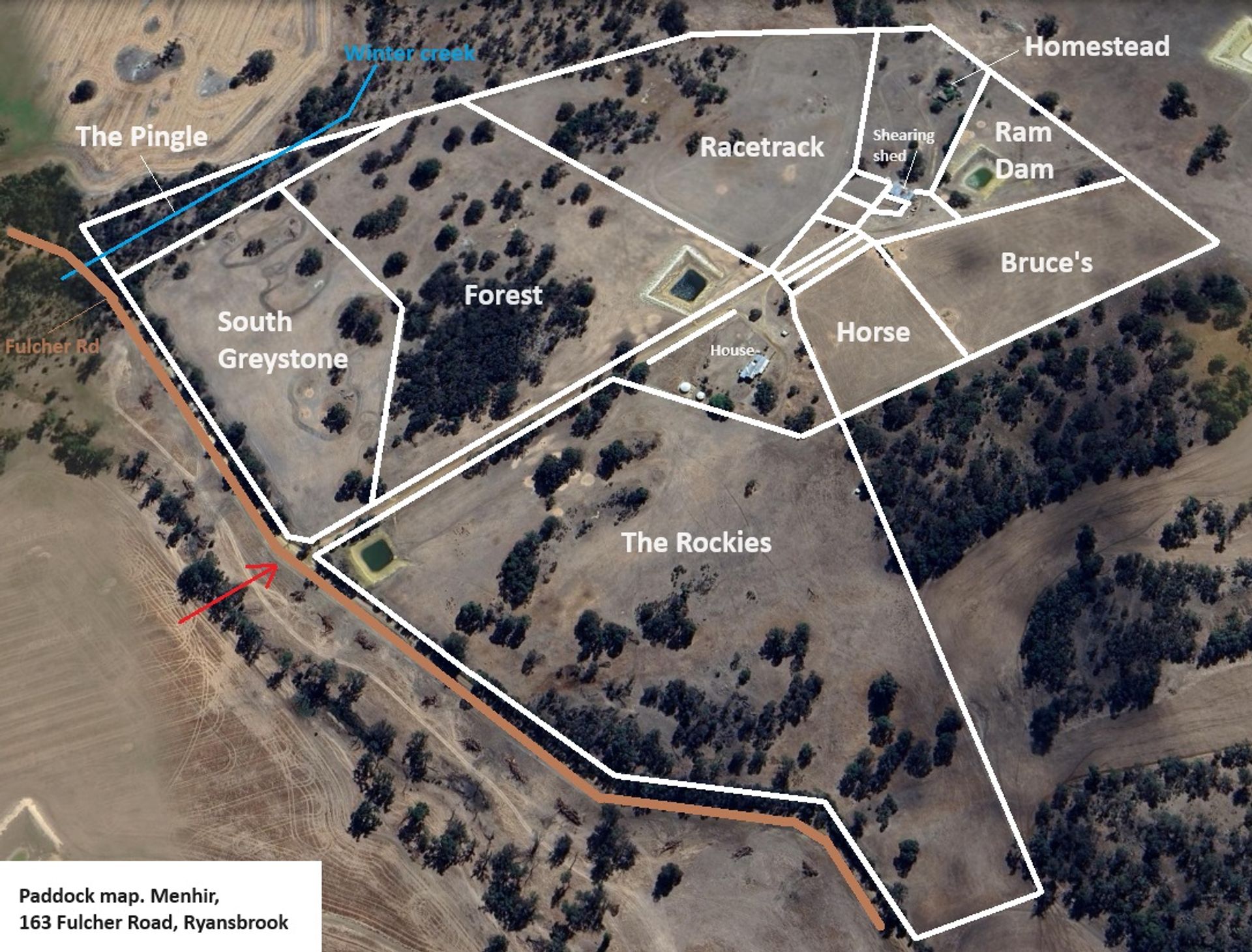 "Menhir" with its 512mm rainfall average has good water security with three good sized dams. Infrastructure on the property includes new steel sheepyards, an older style 4 stand shearing shed, 135,000L rainwater tank, 1 x 23,000L tanks