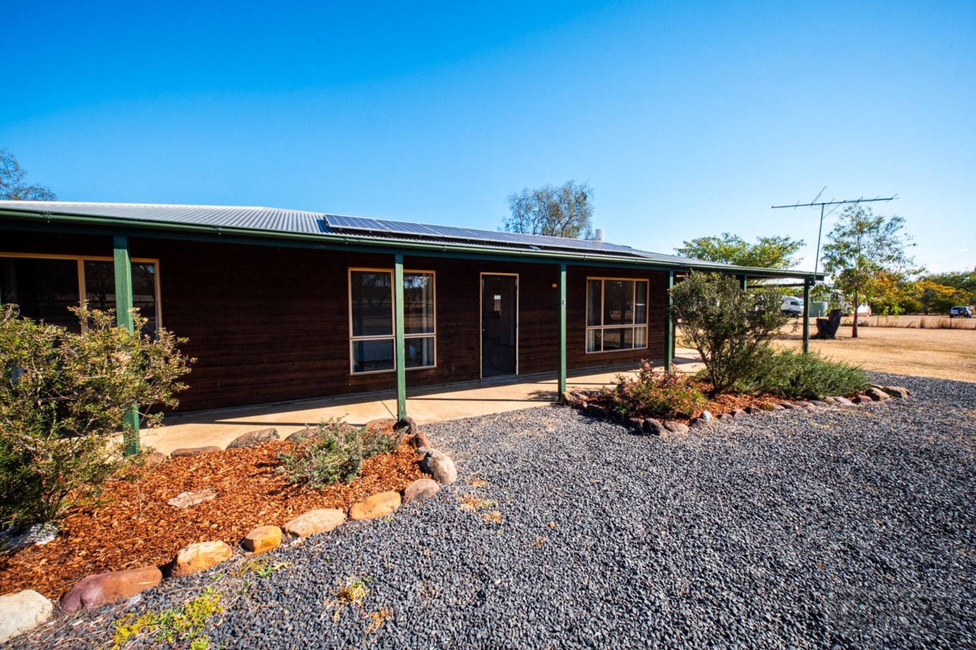 • Timber Clad Home with Modern Extras: Enjoy the rustic charm of timber skirting and window frames, complemented by modern conveniences like solar panels and air conditioning.