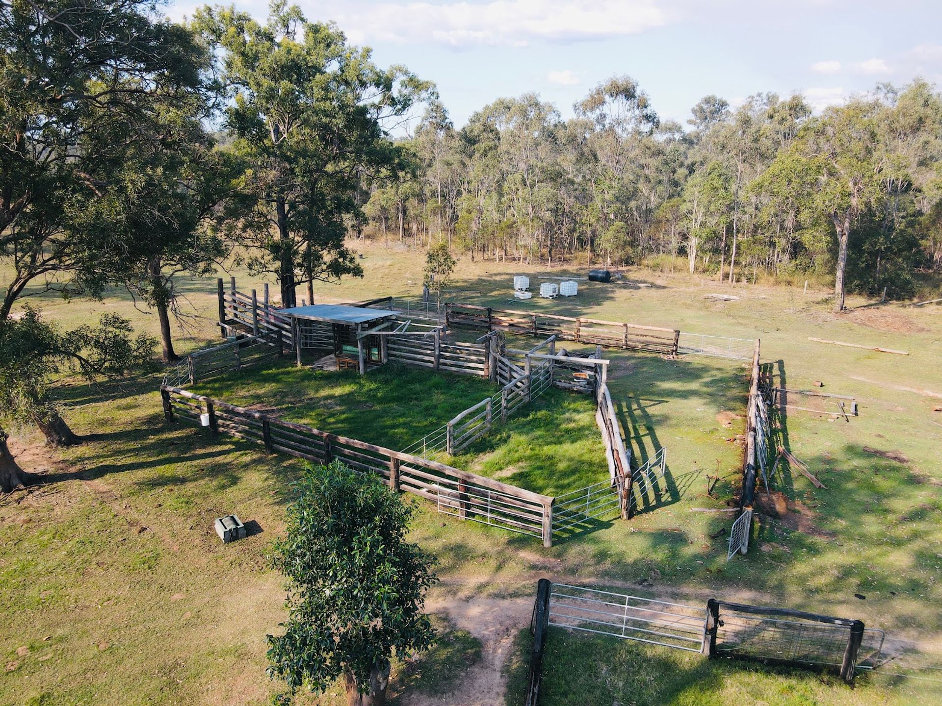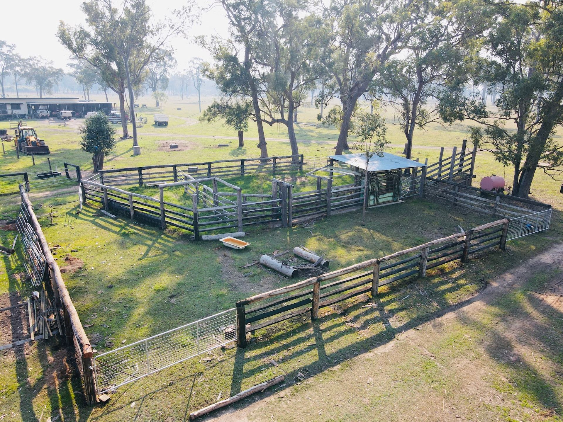 - Timber cattle yards with vet crush