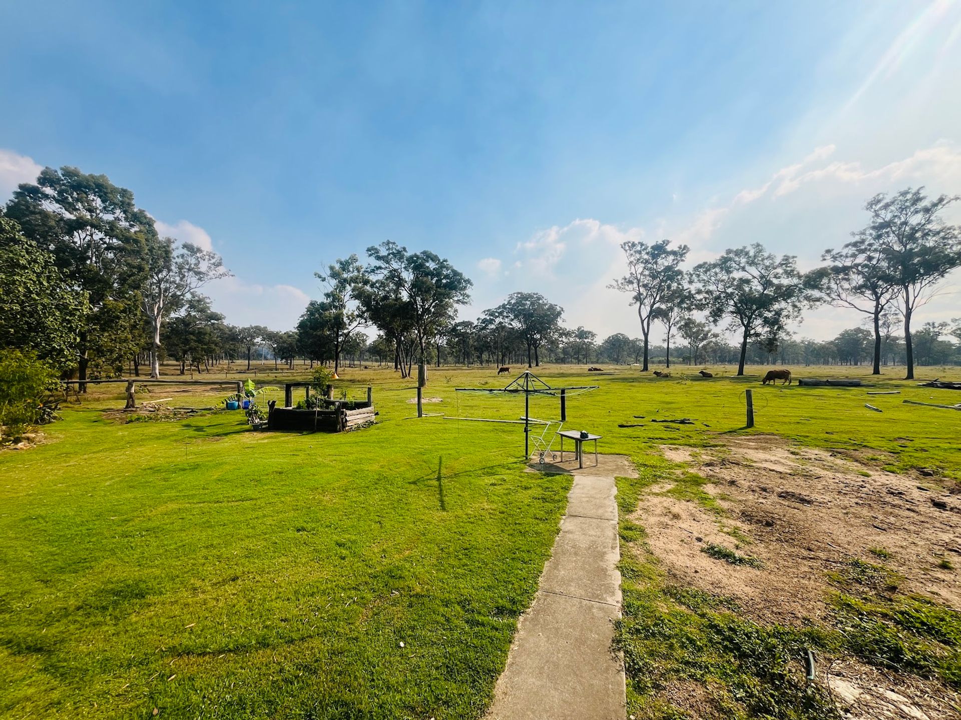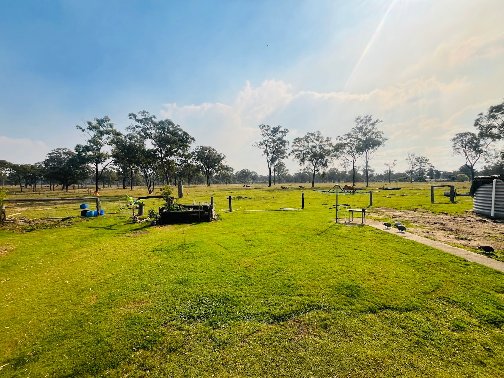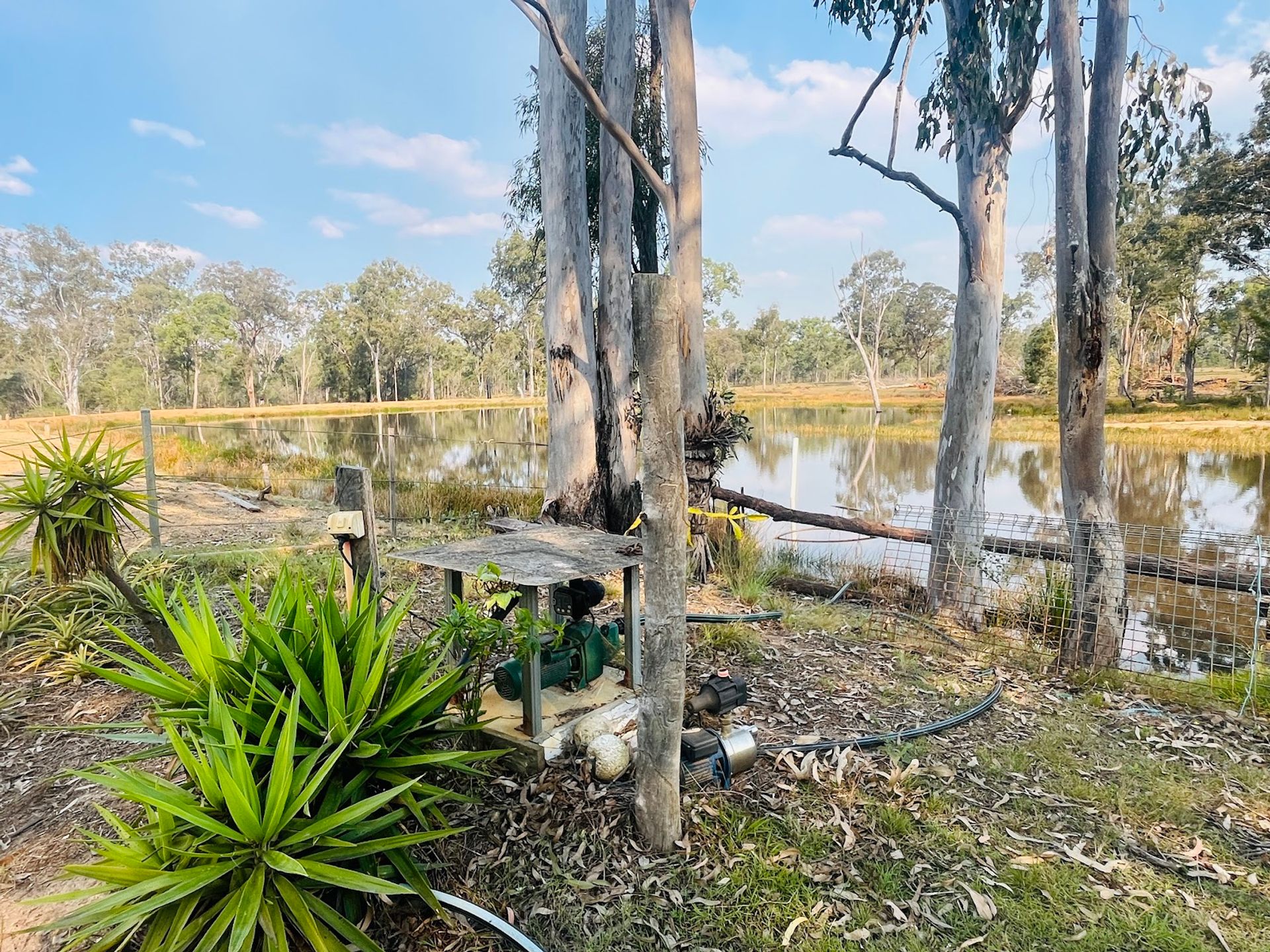 - Electric pump on the dam provides water to taps & gardens throughout & sprinklers in the holding paddock